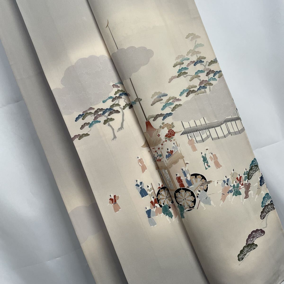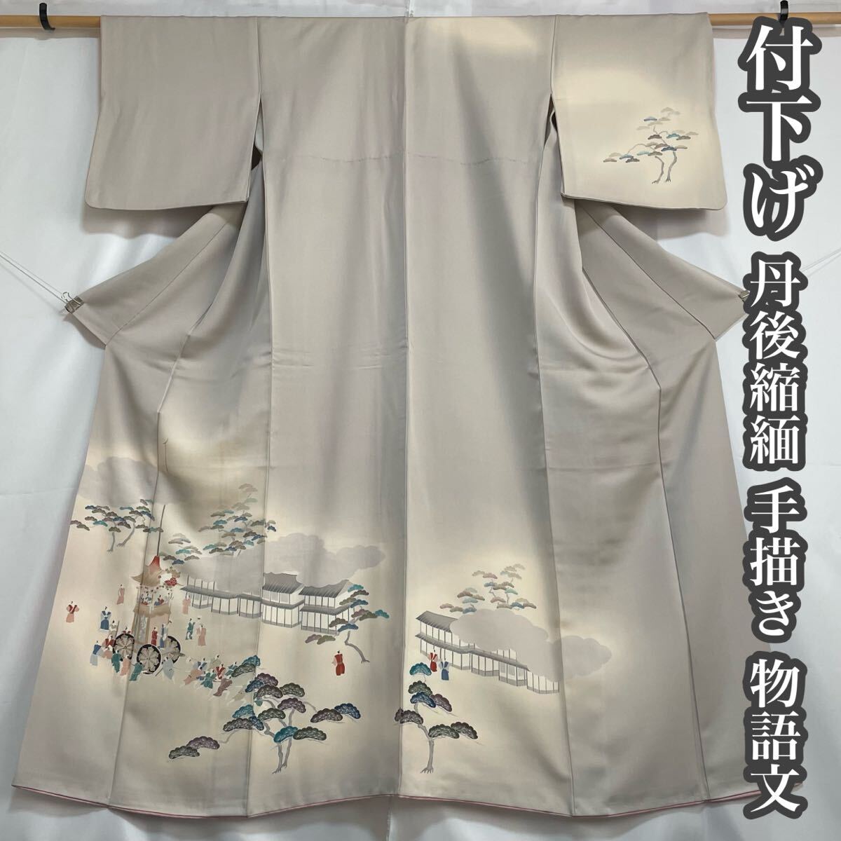 ・物語文様の上品で美しい付け下げのお着物です。 ・左前袖、後身頃にうっすらとシミ、胴裏にシミがあります。(写真 9枚目) ・その他は状態が良く、まだまだ着用していただけますので、おすすめのお着物です。 ・お安く出品致しますので、是非この機会にいかがでしょうか。 |