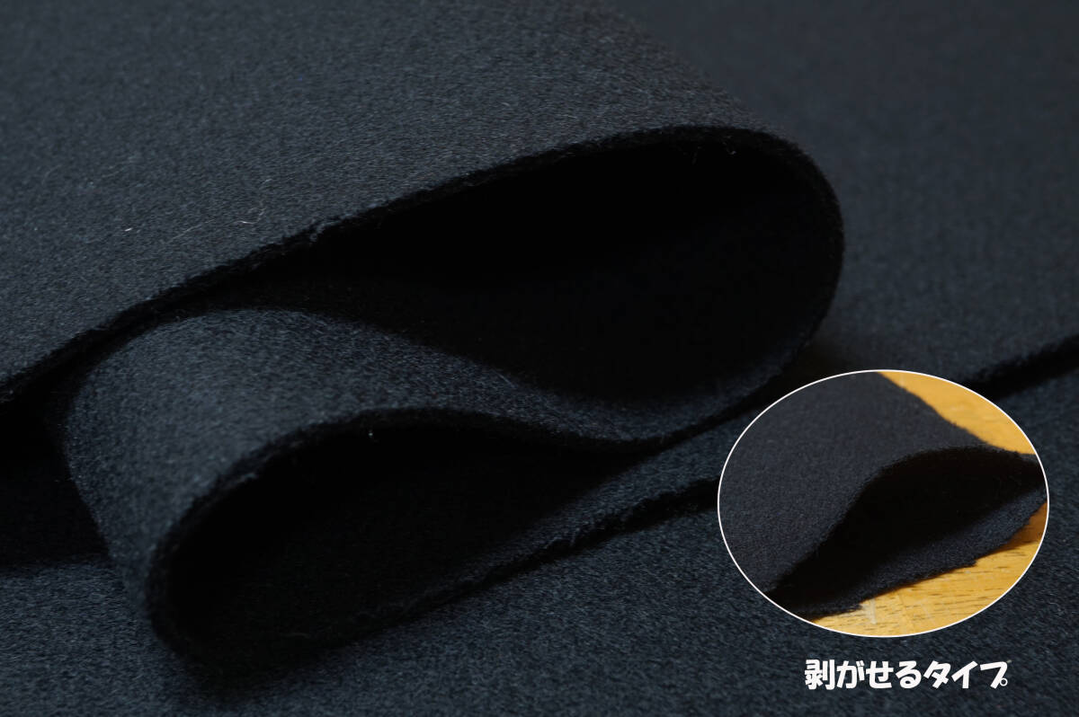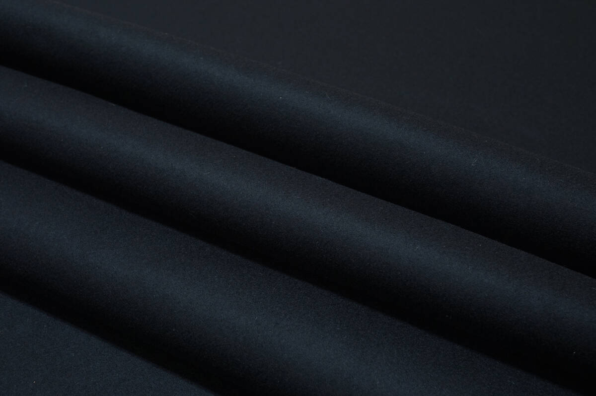 ウール100%、厚地、しなやかな風合いと程よいハリ・コシ、しっとり毛羽感、色調:ブラックでございます。