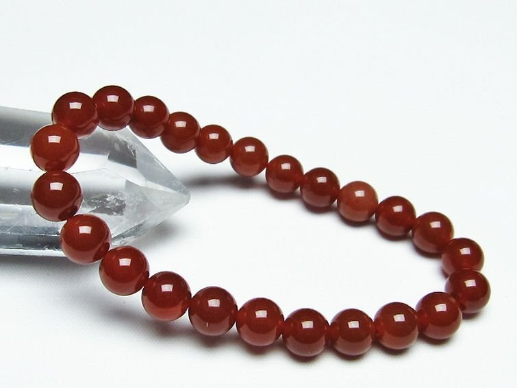 | ■商品名: 赤アゲートブレスレット ■商品ID: T57-5743 ■商品重量:約 17.1g ■商品サイズ:内周約:163mm(±5mm)粒直径約:8mm(±0.5mm) 【アゲート(瑪瑙)】 和名では瑪瑙(めのう)といい、アゲートの模様が馬の脳のように見える事からこのような名前が付けられました。 アゲートは赤、緑、青、黄、黒など、様々な色に着色されることで石本来のパワーがさらにアップするといわれており、着色により魅力を増す天然石はアゲートだけとも言えます。 さらにはアゲートを組み合わせるとペアになっているペアアゲート(トレジャーメノウ)は龍穴を生み出すとされ、風水的にも良いといわれています。 アゲートは古来より日本やインドやチベットなどで魔よけやお守りとされてきました。 失敗や不幸を遠ざけ金運や仕事運、成功運とも結び付けてくれる効果のほか、安産のお守りにも良いとされています。 さらに家庭円満や対人関係をスムーズにするなど、オールマイティな効果を持った石です。 ⇒ アゲートをもっと詳しく ◆ワンポイント情報 アゲートはカルセドニーの変種で、染色がされていなくともそれぞれの種類に多様な色があります。 ざっと仲間を挙げてみてもオニキス(黒)、サードニクス(橙色)、ブルーアゲート(青)、グリーンアゲート(緑)、イエローアゲート(黄)、ブルーレースアゲート(縞青)、モスアゲート(縞緑)、天眼石(縞黒)、カーネリアン(橙色)、ジャスパー(多様な縞)などとても多くの特徴と色合いを持っています。 |