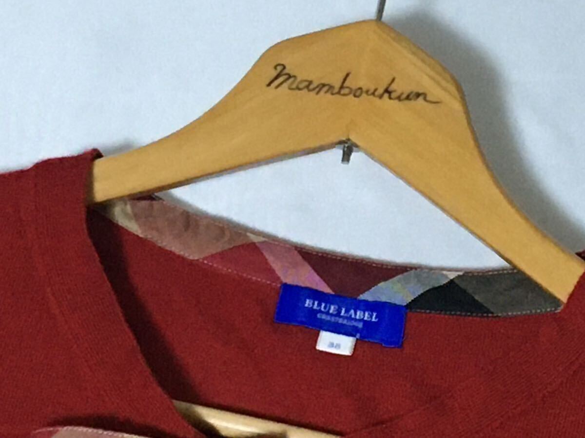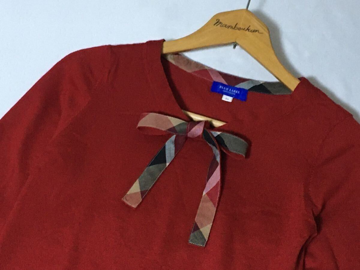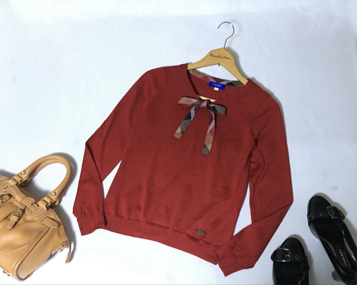 美品 ブルーレーベルクレストブリッジ チェックのおリボンが可愛いウールニット 38 送料230円♪