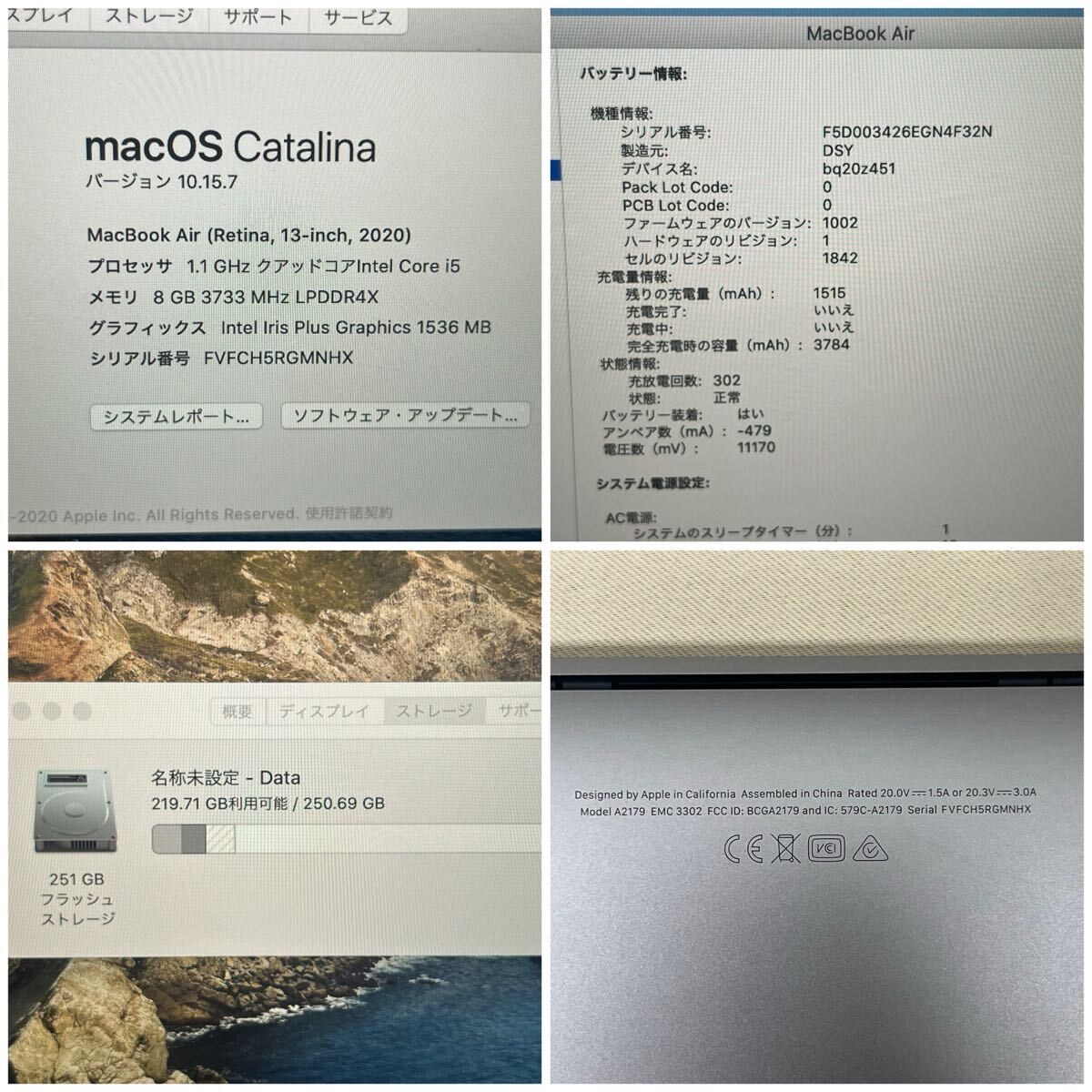 MacBook Air (Retina, 13-inch, 2020) Core i5 1.1GHz/8GB/SSD 256GB スペースグレイ A2179 動作確認済
