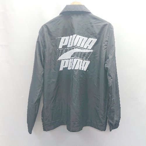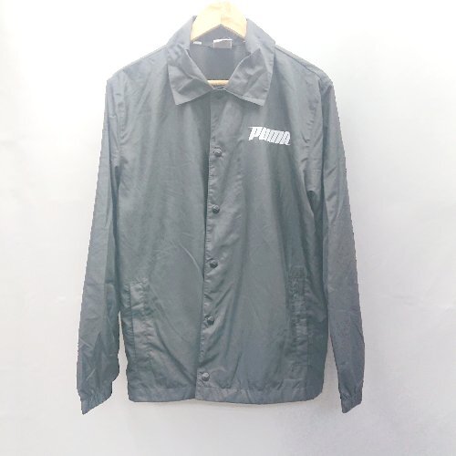◇ ⊇ PUMA プーマ ロゴ入り 長袖 コーチジャケット ウインドブレーカー サイズM ブラック メンズ E
