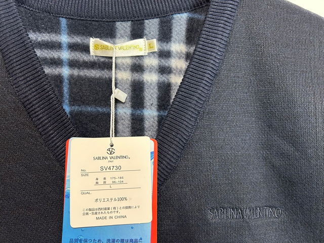 【未使用新品/紙タグ付き】SABLINA VALENTINO 紺 Lサイズ 裏フリースボンディングベスト 洗えるウォッシャブルニット