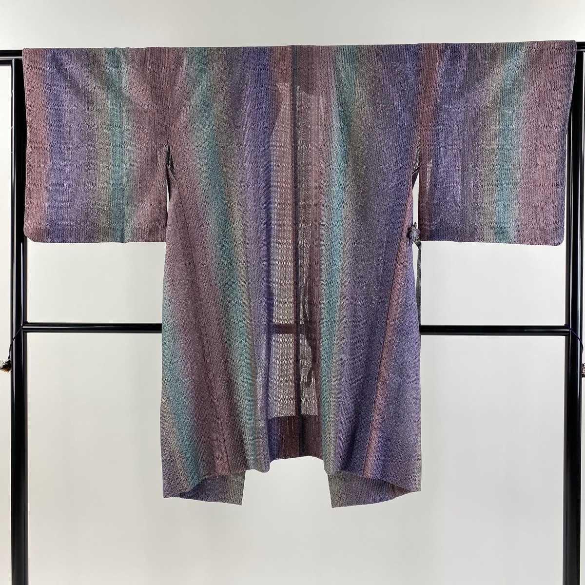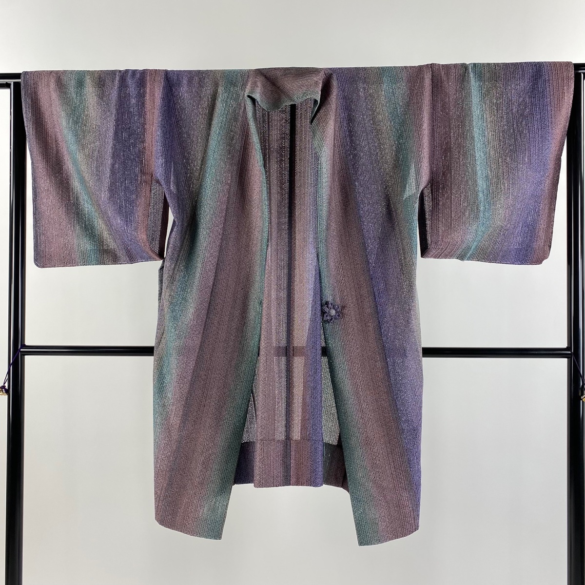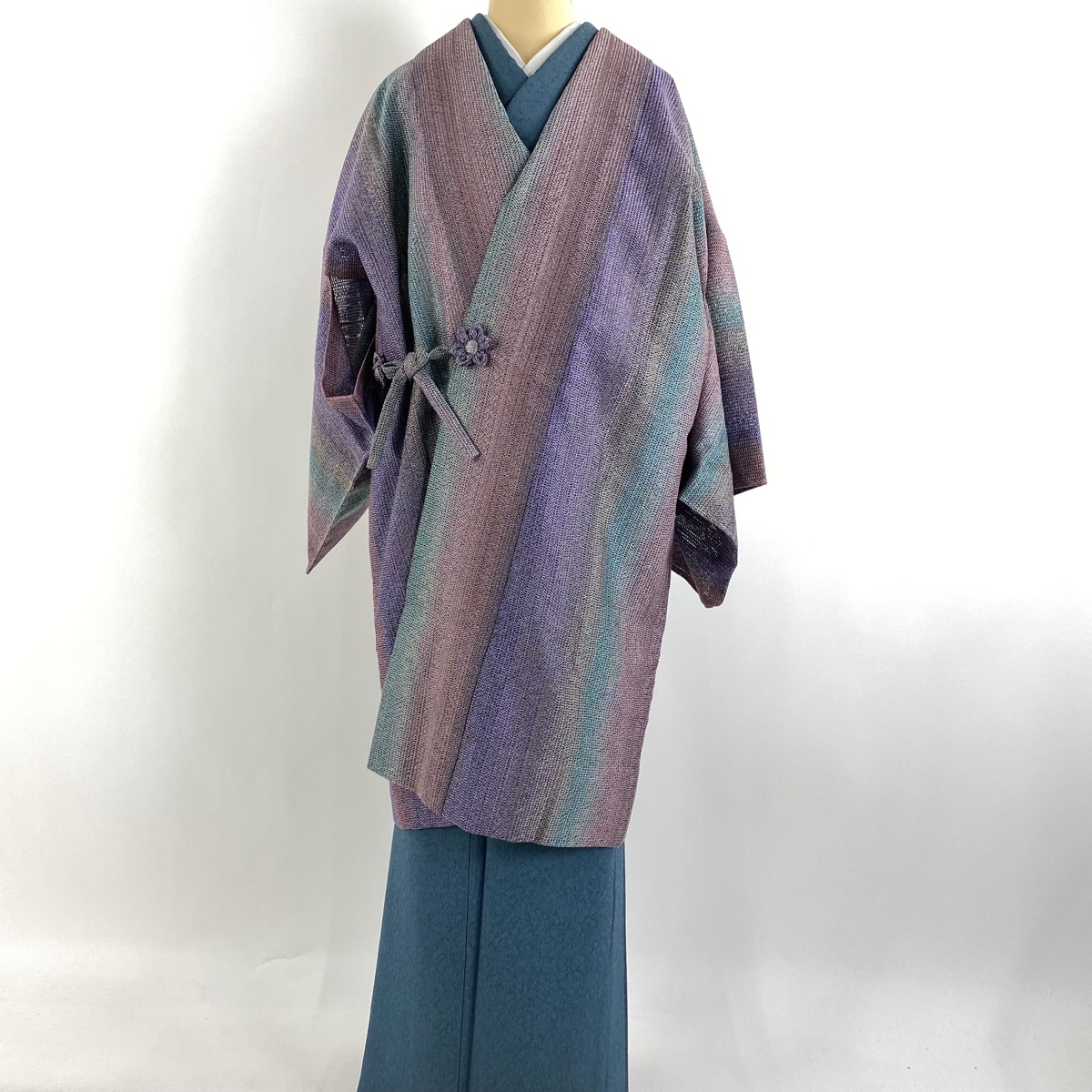 | 道中着 美品 逸品 和装コート 縦縞 紫 身丈102 裄丈66 M 正絹 【中古】 |