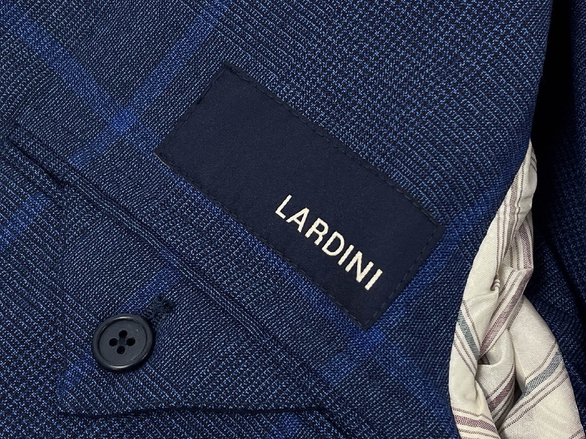美品【ラルディーニ LARDINI】JR0823AQ グレンチェック 3ボタン段返り スーツ (メンズ) size46/7REG ネイビーブルー系 ◇35RMS2910◇