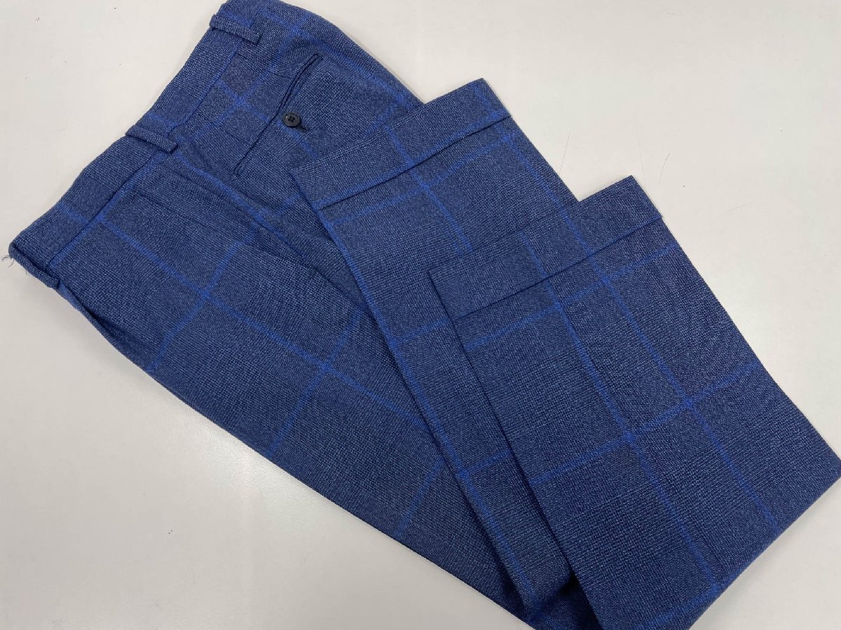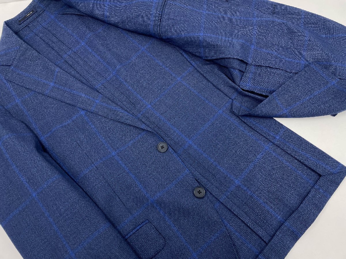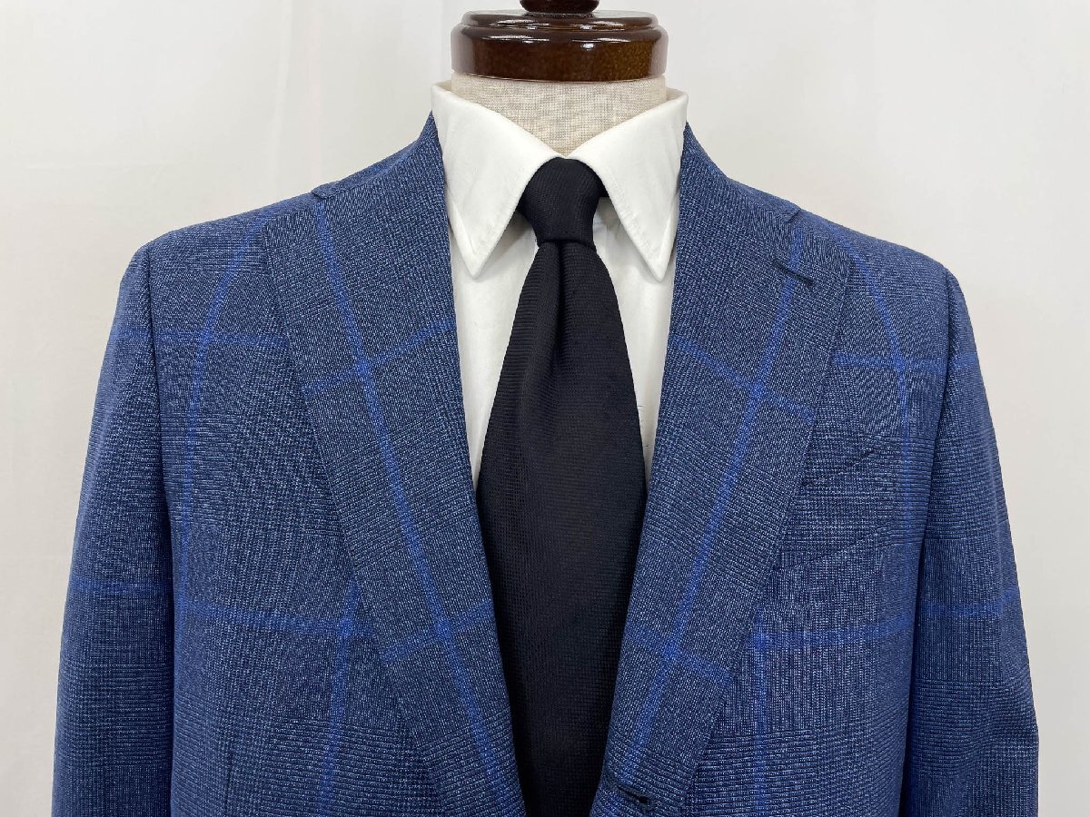 ・全体はブルー×ブラックの糸が織り交ざったグレンチェック柄です。