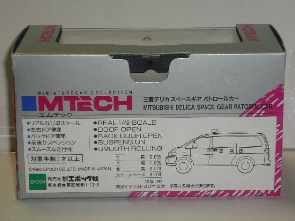 ☆1/43 M-TECH 三菱 デリカ スペースギア パトロールカーです。箱に少し傷みがありますので、ご了承の上入札下さい。商品の状況は写真でご判断の上、ノークレーム・ノーリターンでお願いします。保証はできませんが、定形外郵便での発送も可能です。