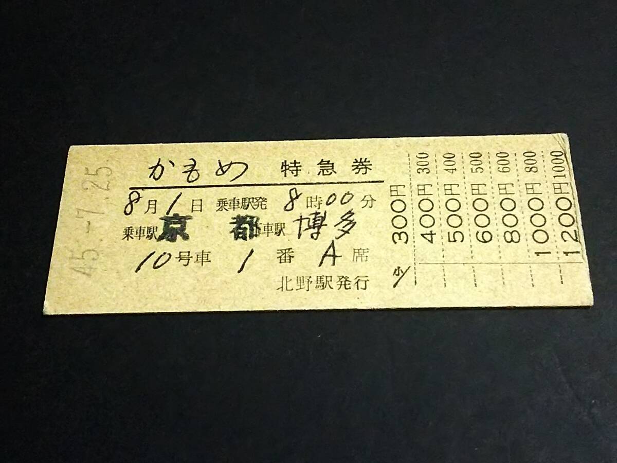 【特急券(準D型)】 「かもめ」京都→博多 S45.7.25 北野駅発行 [裏スジ]