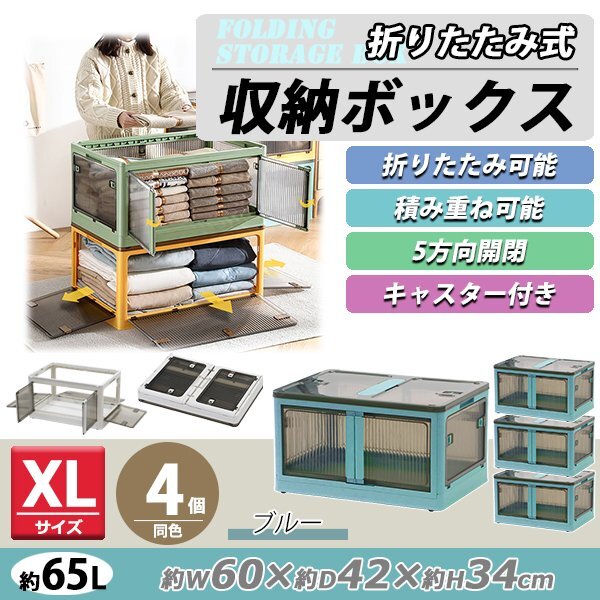 | 商品名 | 送料無料 収納ボックス 折りたたみ 4個セット 約60×42×34cm XLサイズ 65L キャスター付き 5面開閉 観音開き 積み重ね スタッキング クリア 透明 プラスチック コンテナ 衣装ケース 折畳み おしゃれ 収納 小物 おもちゃ 衣類 布団 押し入れ stbox87xl4p |