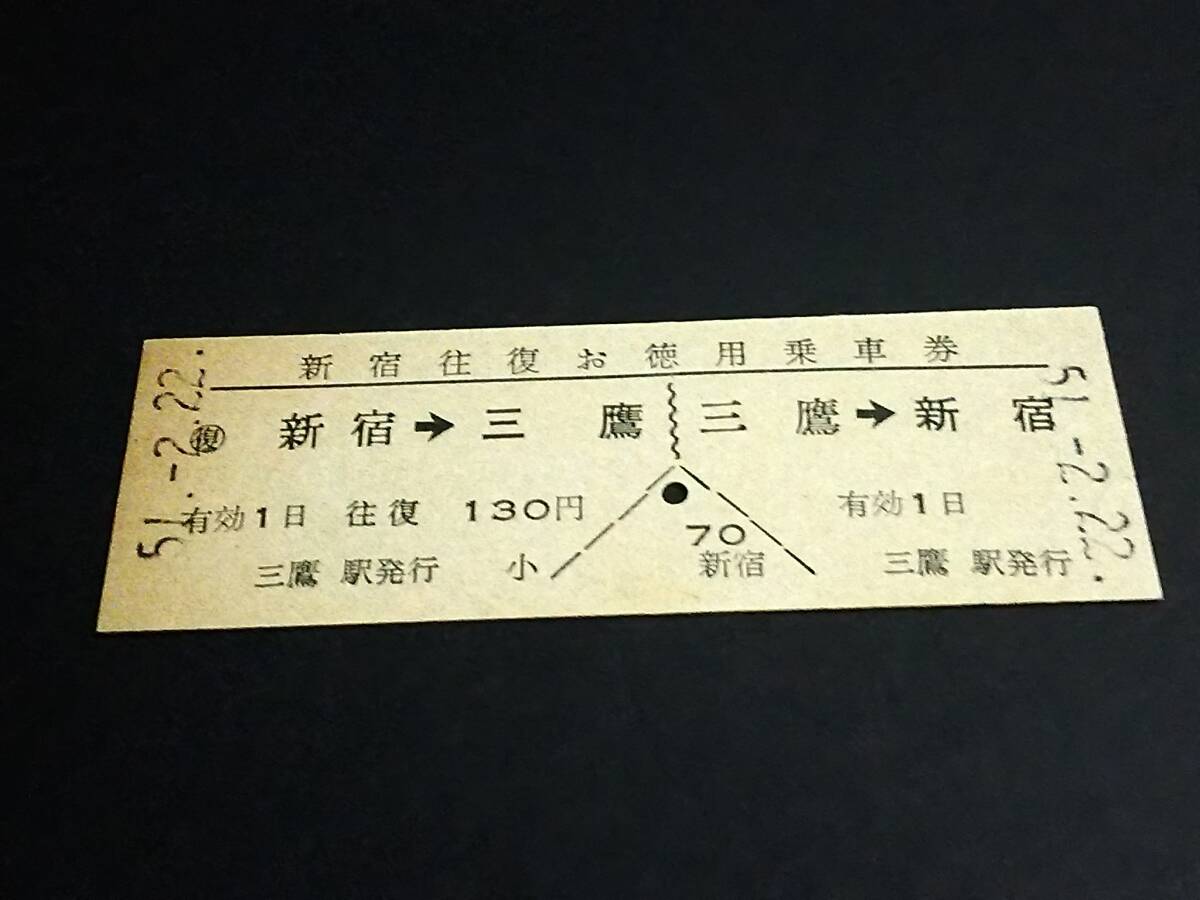 【[未使用]往復乗車券(D型)】 『新宿往復お徳用乗車券』三鷹⇔新宿 S51.2.22