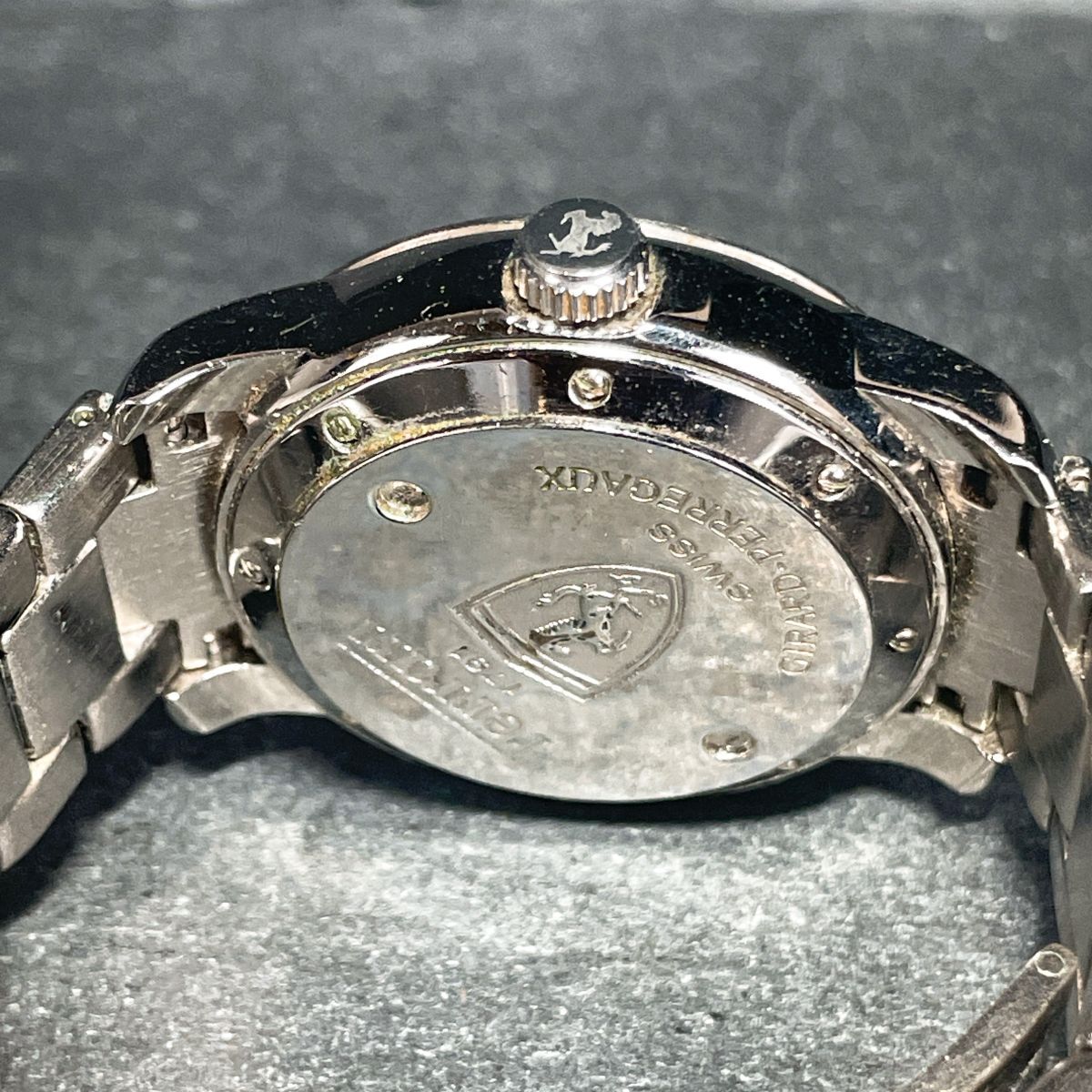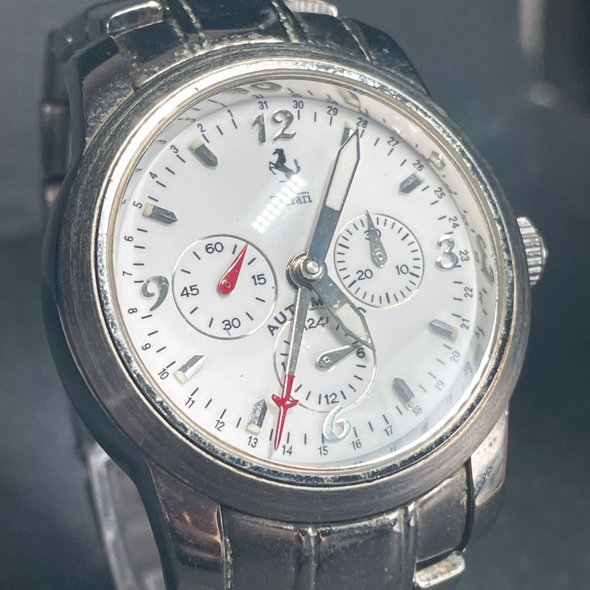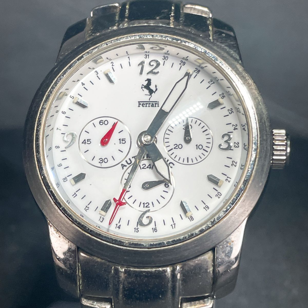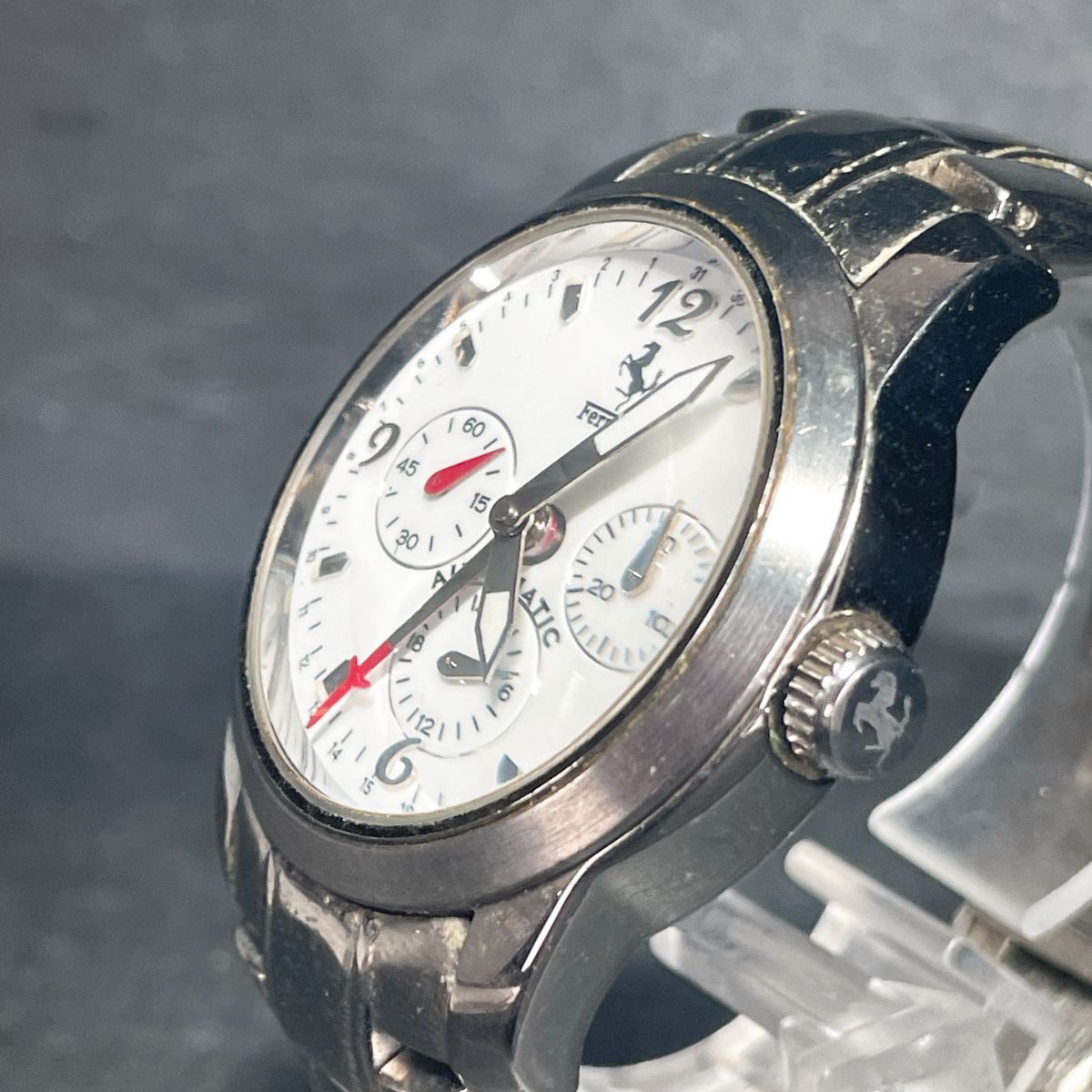 美品 Ferrari フェラーリ 腕時計 アナログ 自動巻き ホワイト文字盤 メタルバンド シルバー ラウンド ステンレススチール 動作確認済み