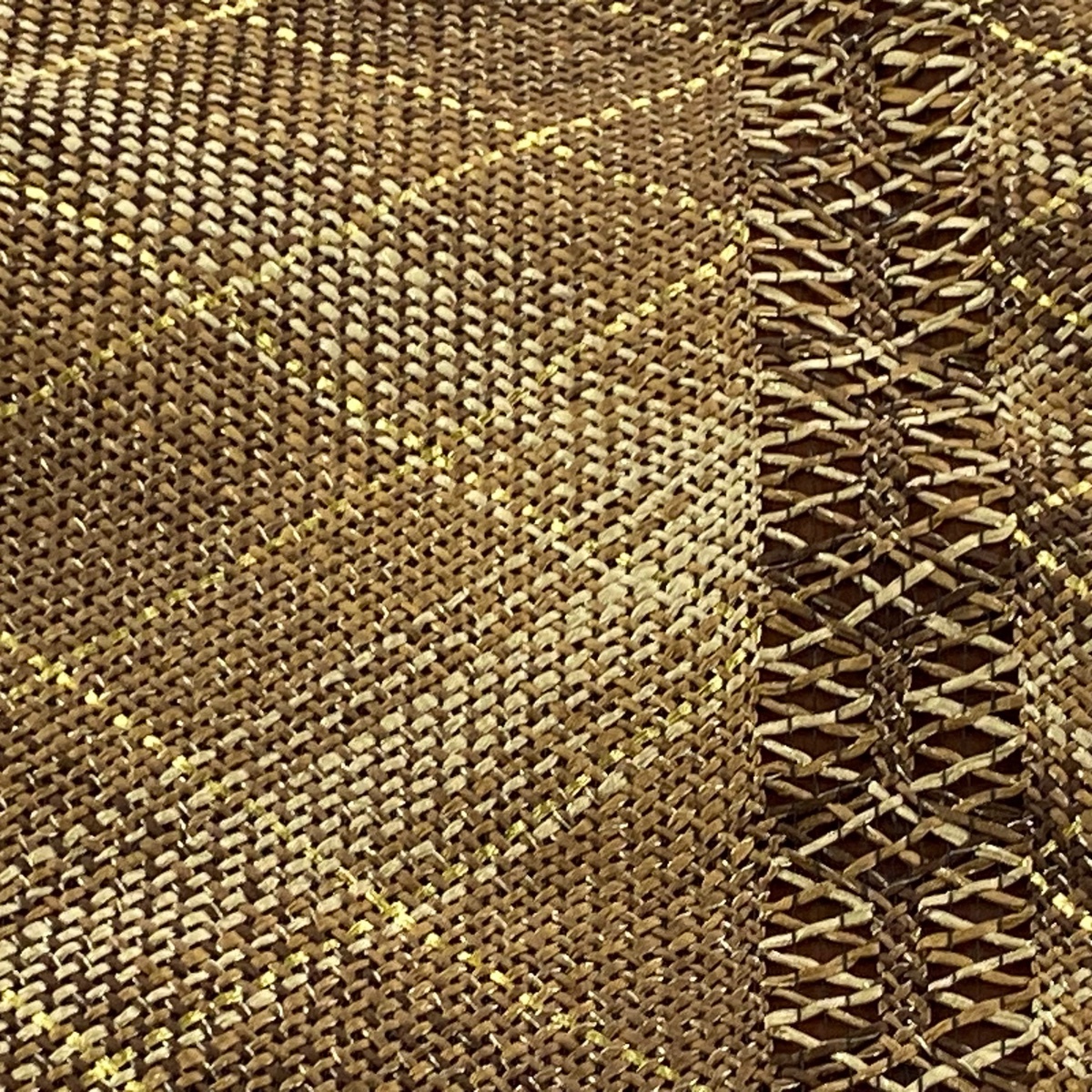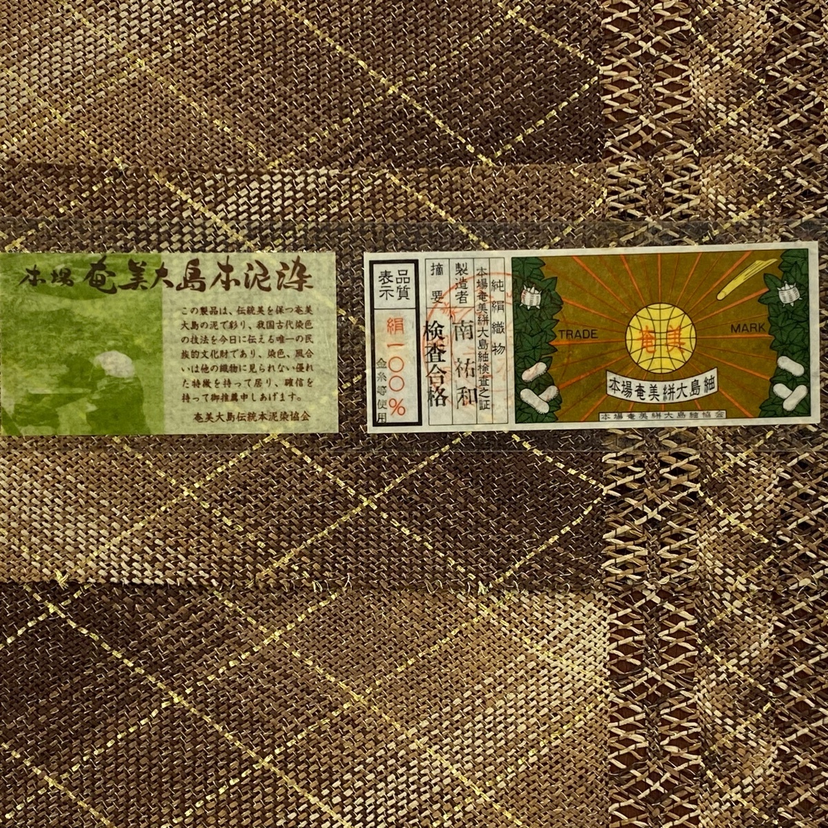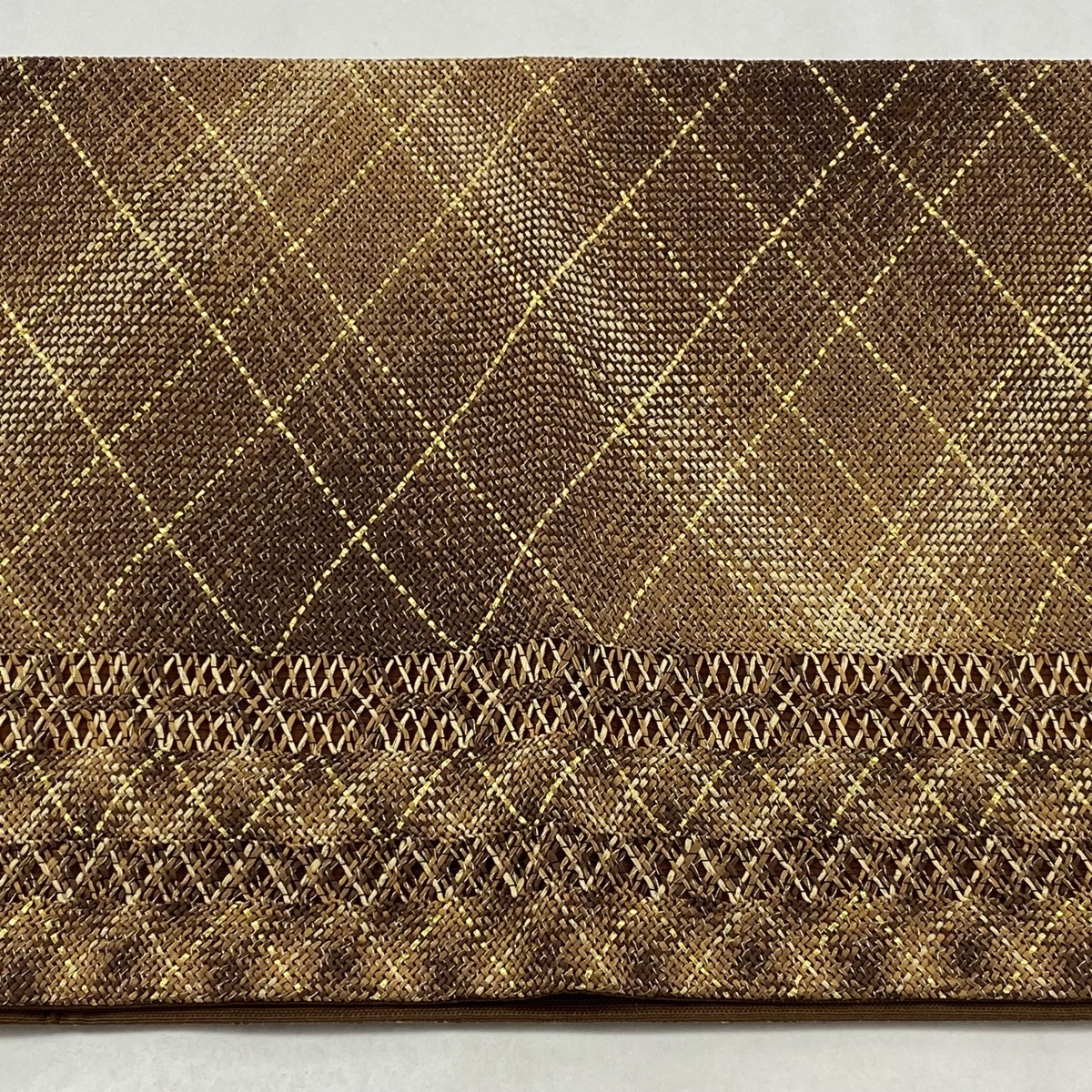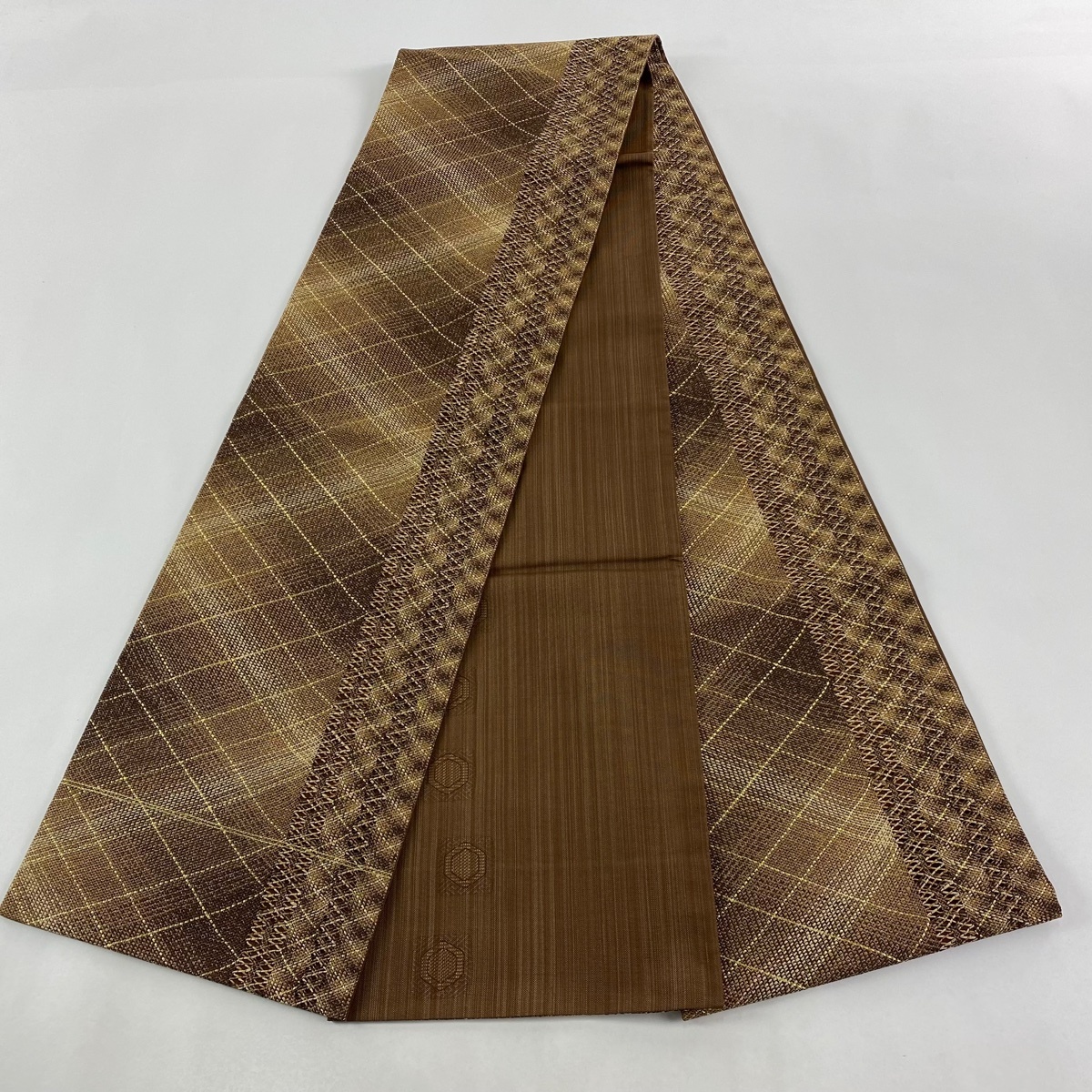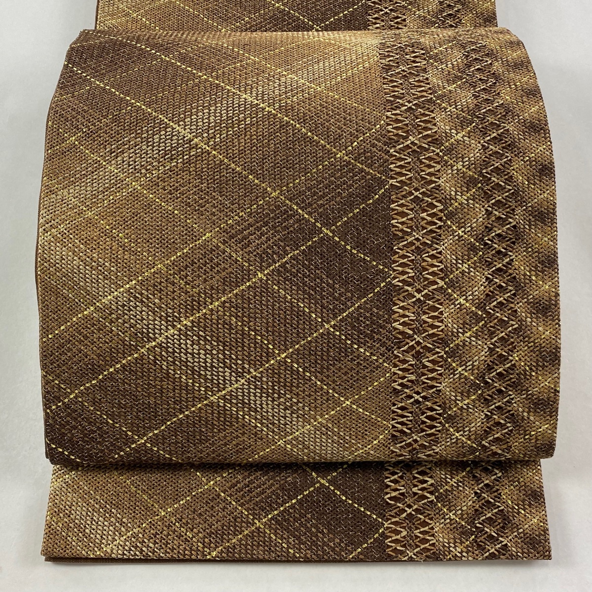 | 袋帯 美品 秀品 証紙 斜め格子 縞 金糸 茶色 全通 正絹 【中古】 |