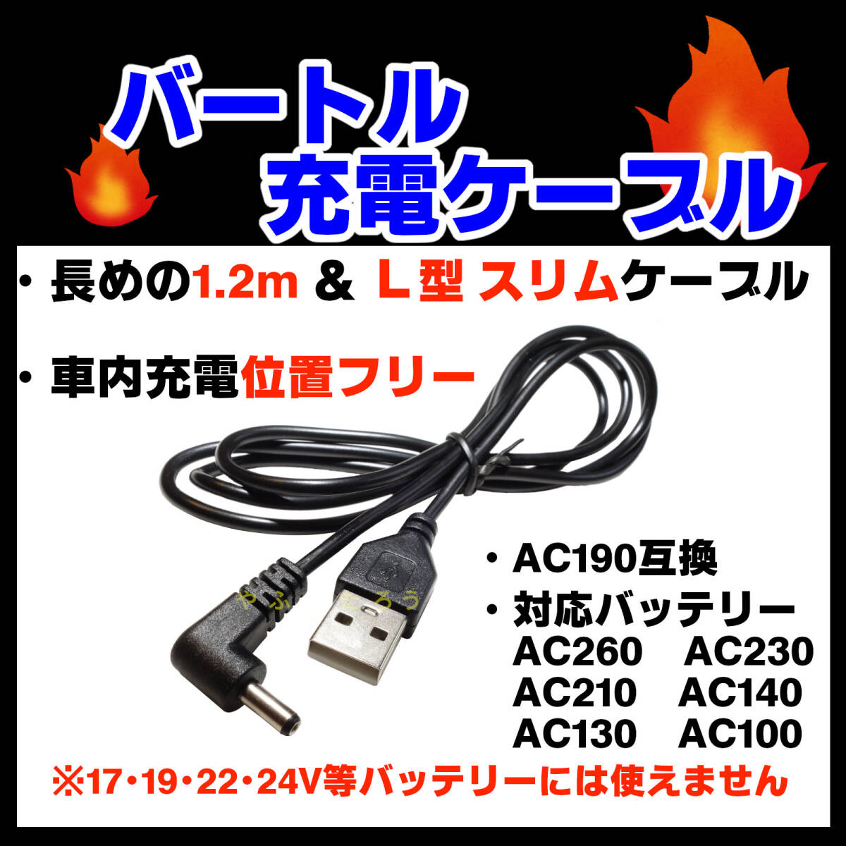| ■バートルUSB充電ケーブル AC190互換■1.2mスリムケーブル■AC100~AC260■AirCraft■各社空調服対応■エアークラフト■ | |