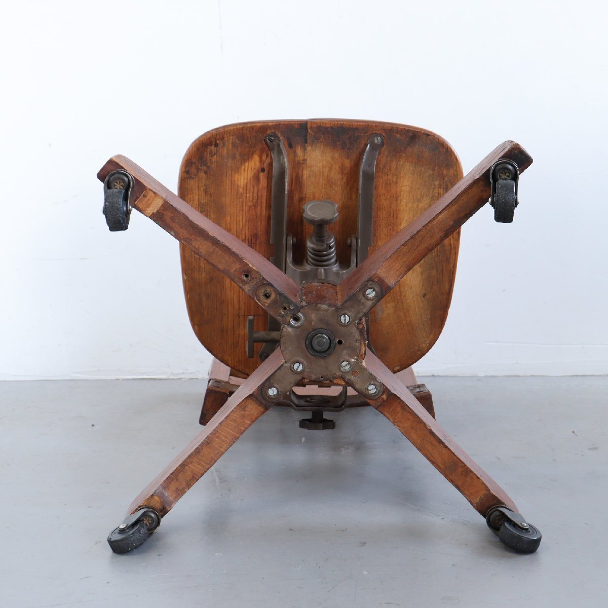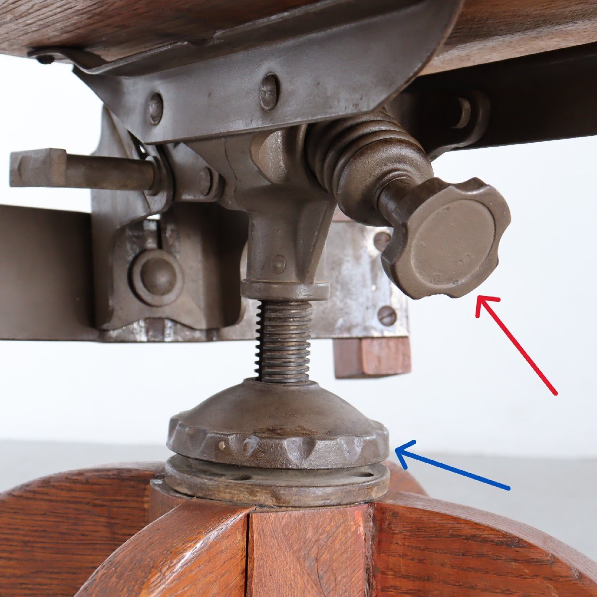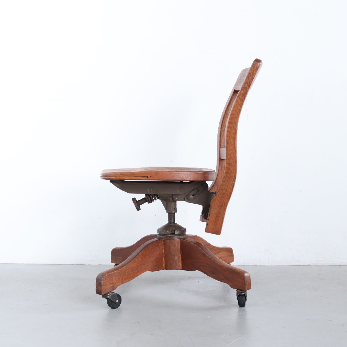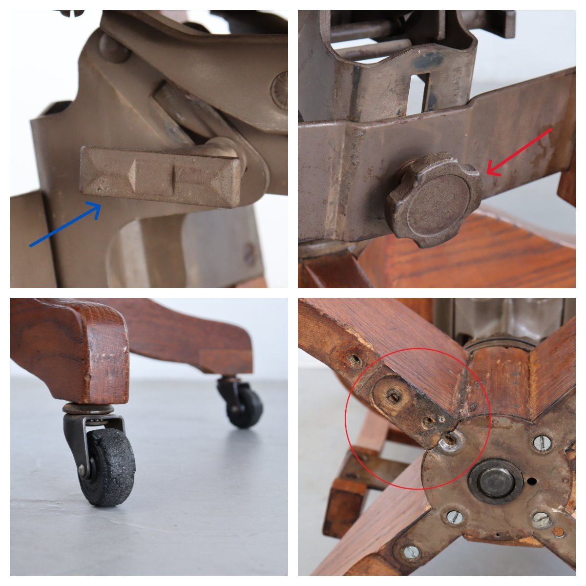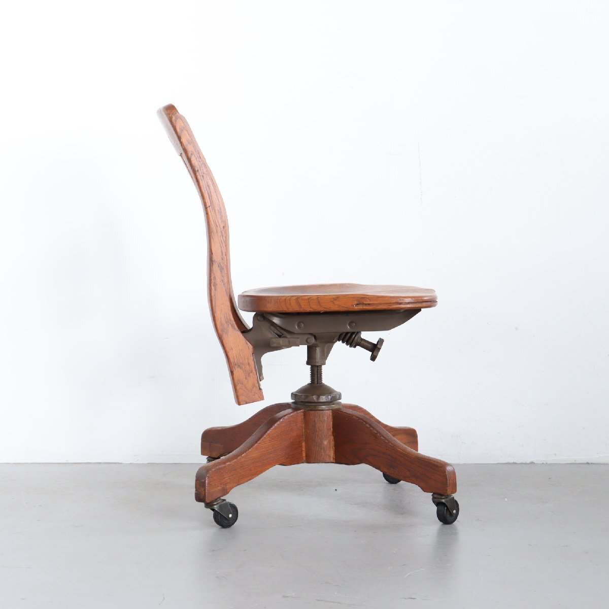 | 商品説明 explanation | 木製のヴィンテージデスクチェアです。 詳しい年代は不明ですが、推定1930年~1950年以前に主にアメリカの図書館やオフィスなどで使用されていた椅子になります。 座面の高さとリクライニングのかたさ、背もたれの高さと角度を調整できます。 木材の風合いが良く、重厚感のあるオーセンティックなデザインです。 ご自宅やお店などにいかがでしょうか。 |