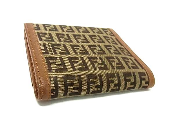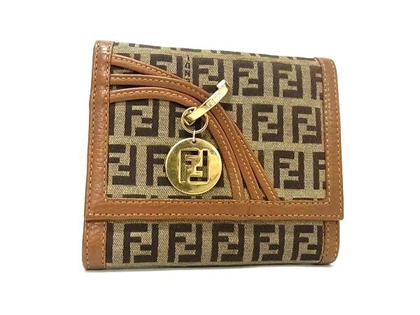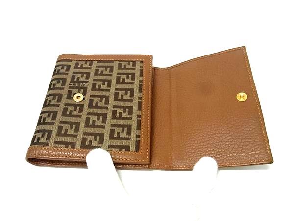 1円 FENDI フェンディ ヴィンテージ ズッカ柄 ズッキーノ キャンバス×レザー 二つ折り 長財布 ウォレット札入れ ブラウン系 FP8998
