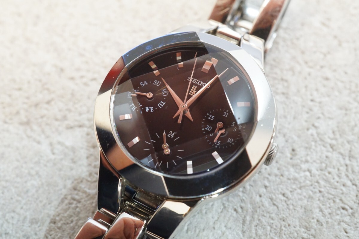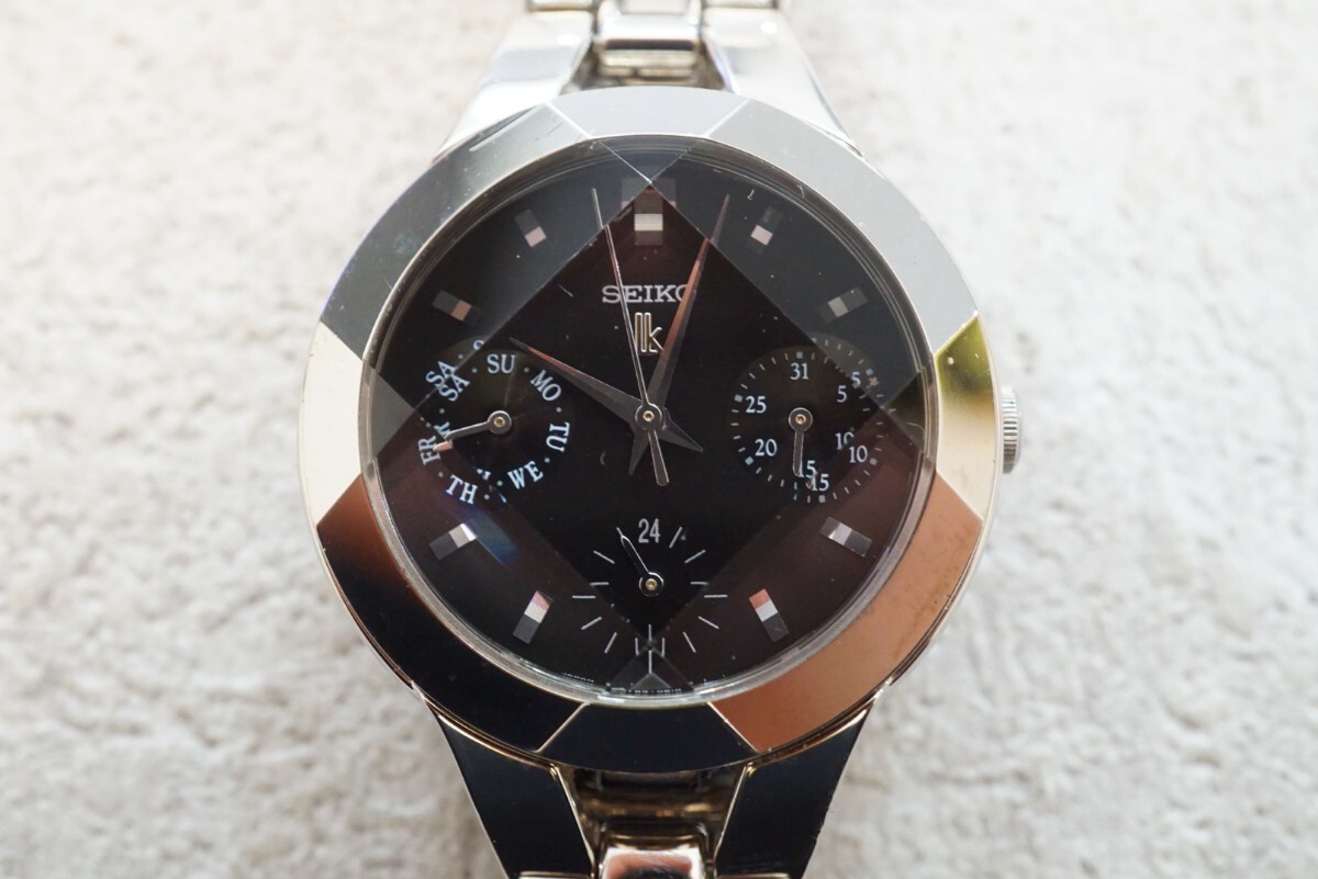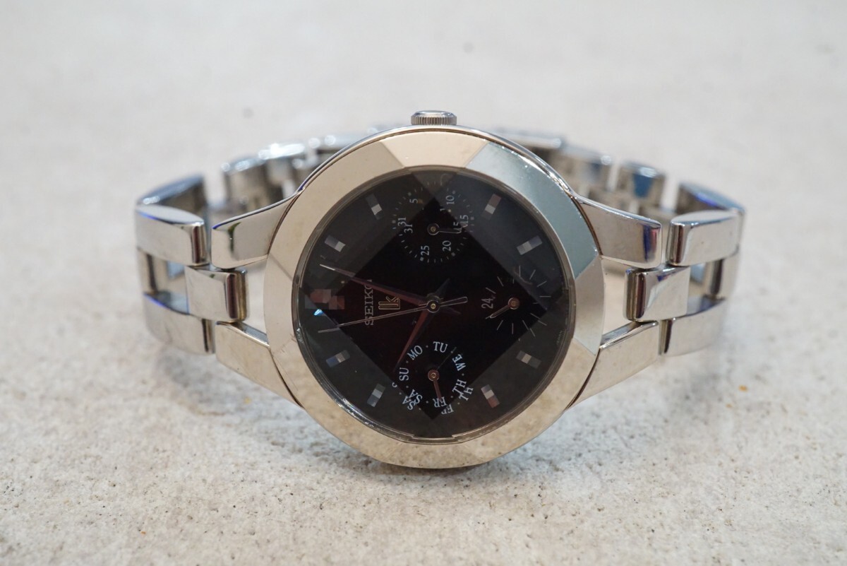 F809 SEIKO/SEIKO ルキア LUKIA lk カットガラス 黒文字盤 レディース 腕時計 アクセサリー ヴィンテージ ブランド クォーツ 不動品