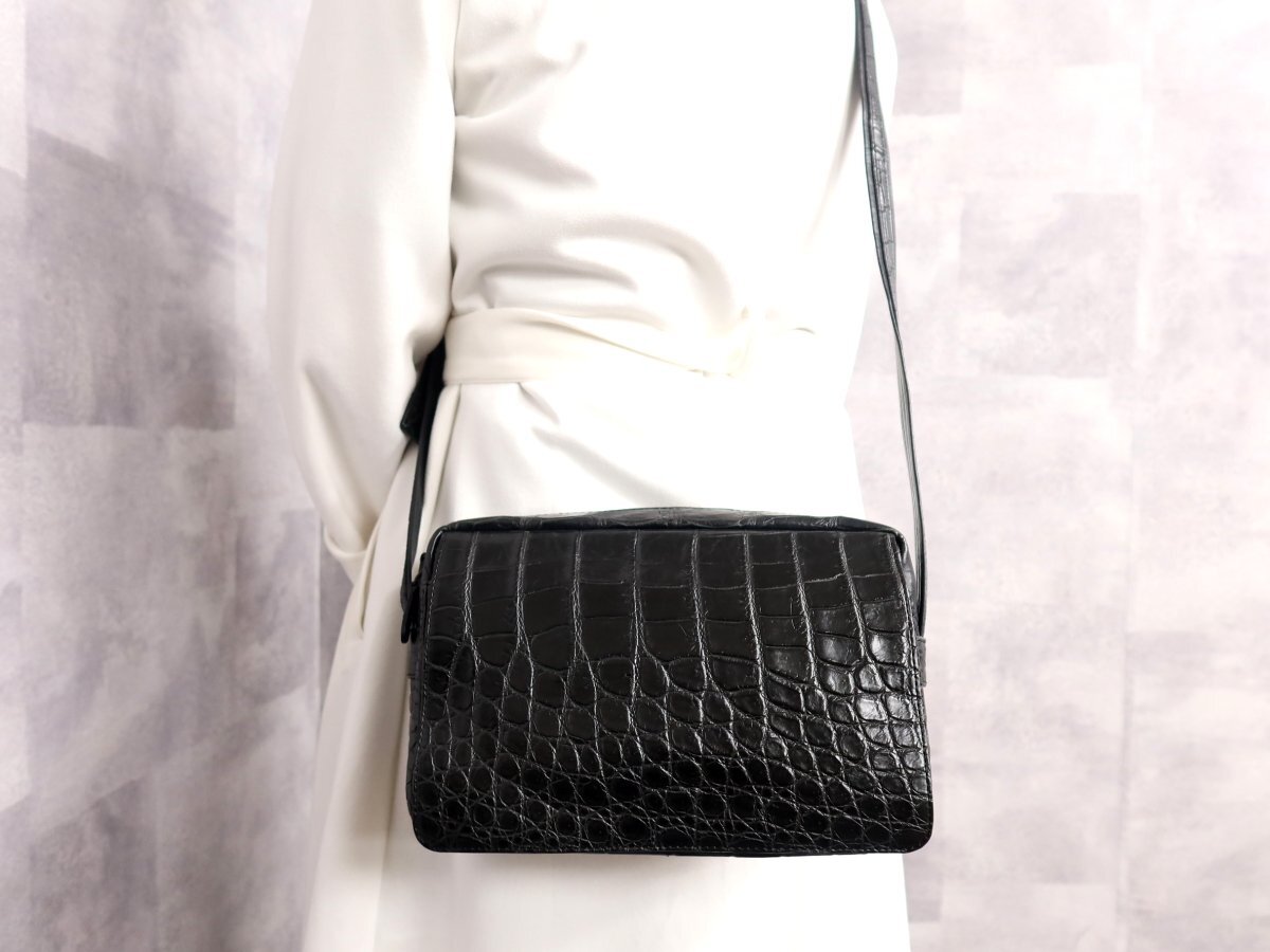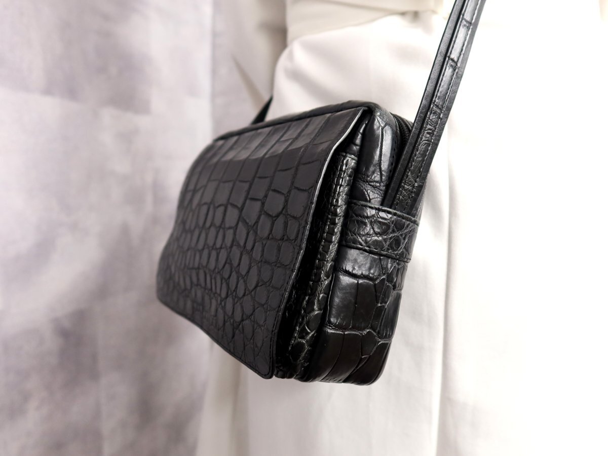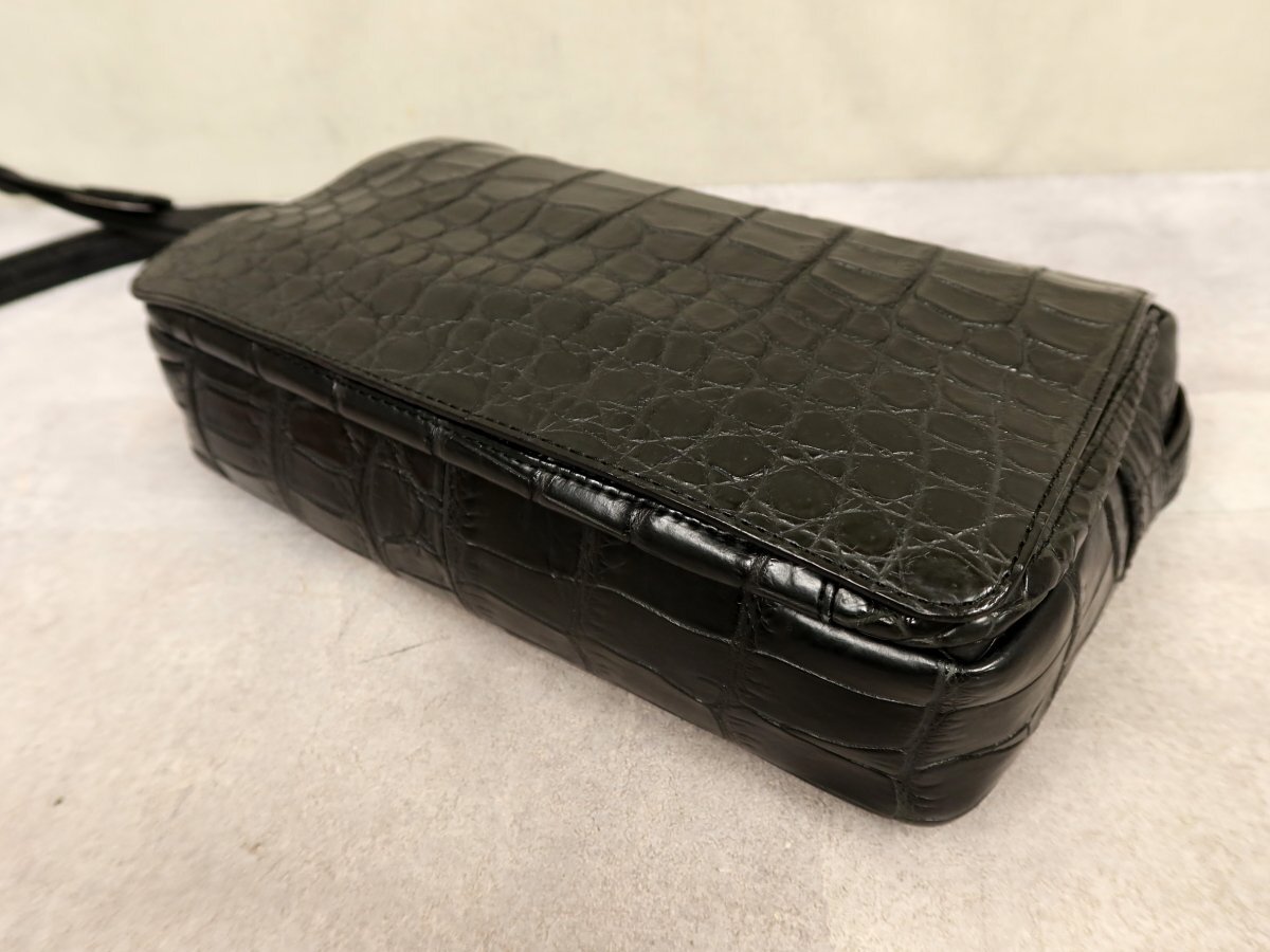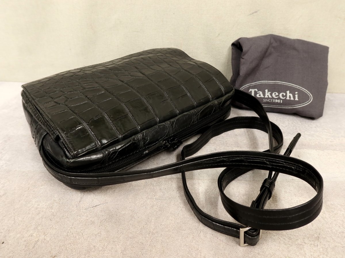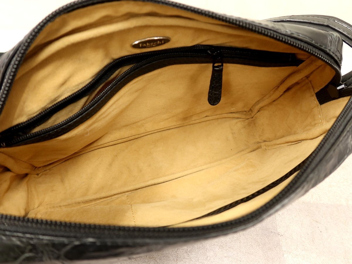 ●超美品●Takechi タケチ●メンズ●マット クロコダイル 本 ワニ 革●ショルダー バッグ●黒●シルバー金具●斜め掛け●かばん●Js62438