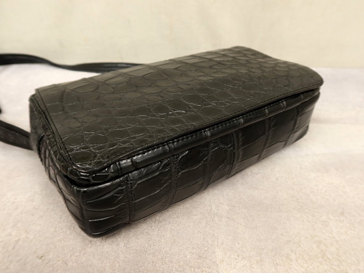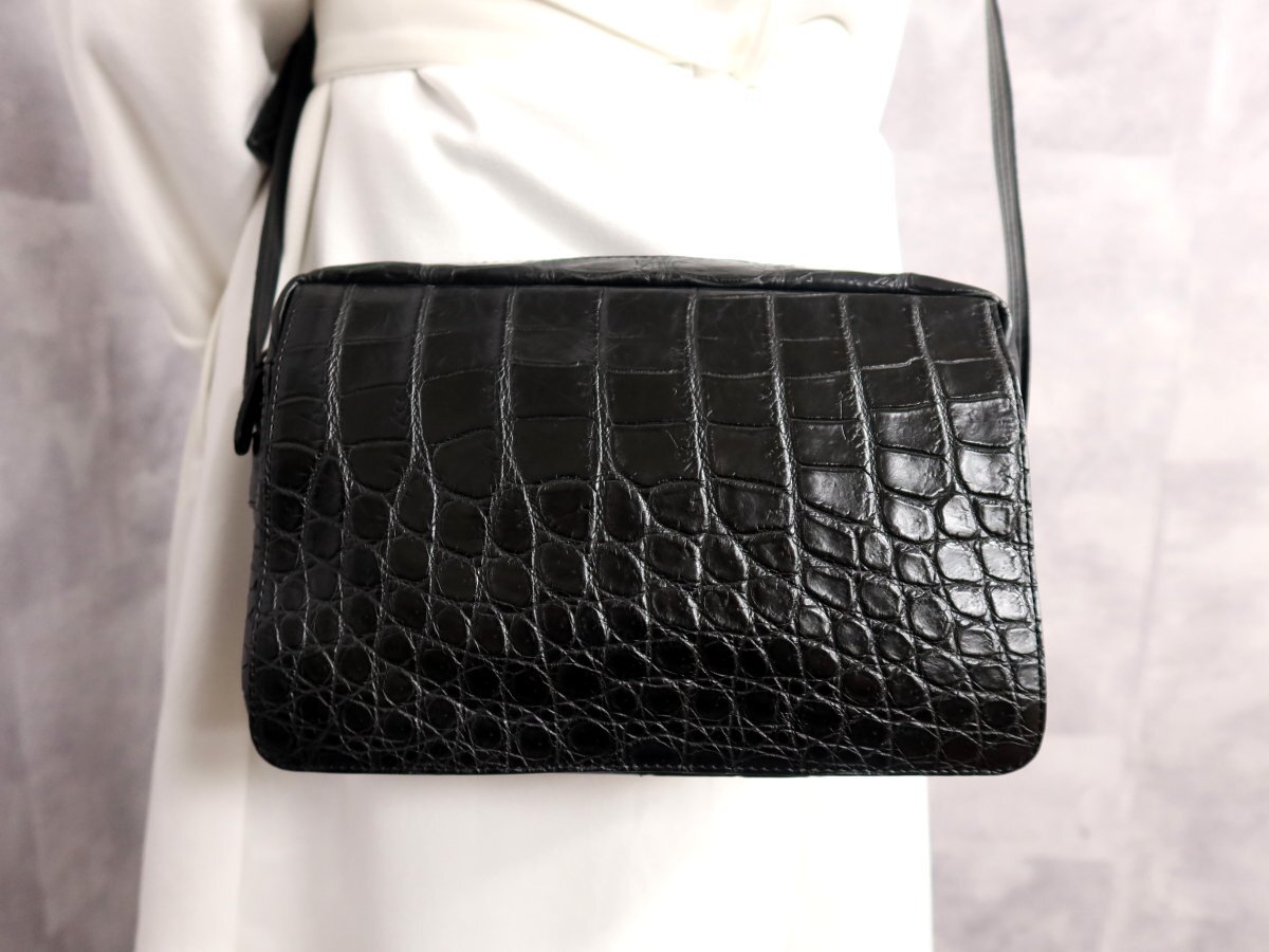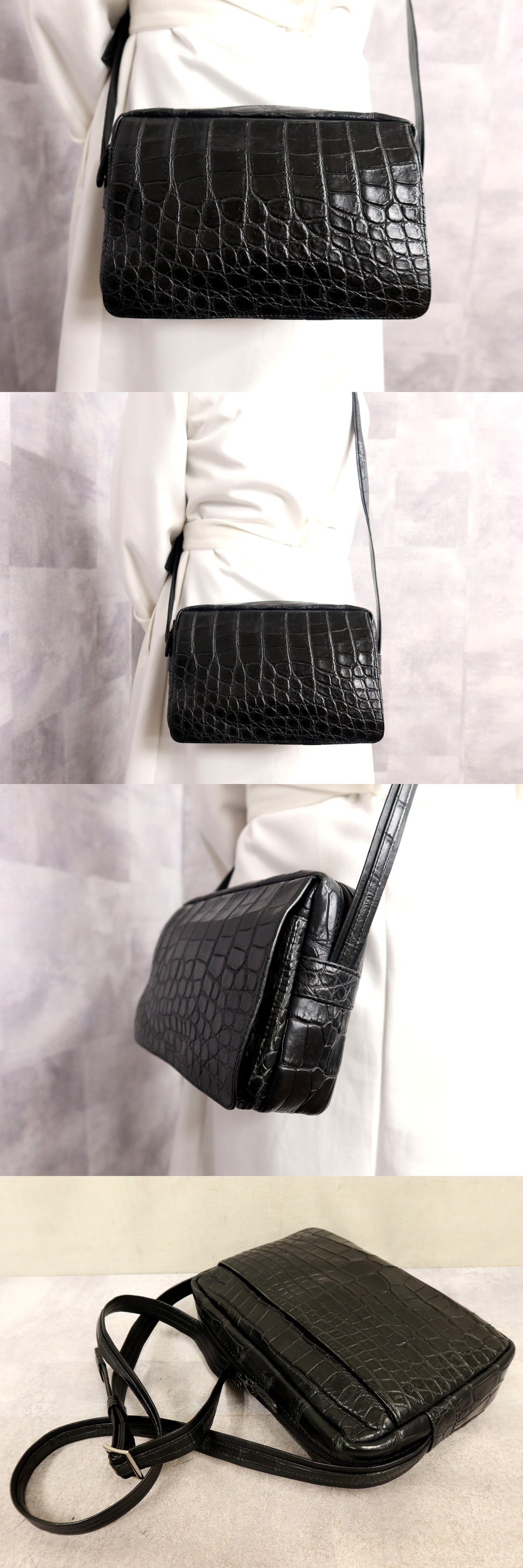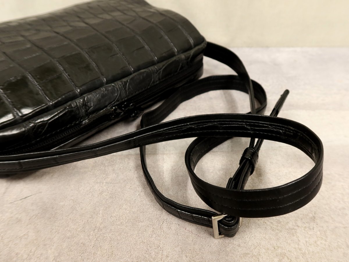 ●超美品●Takechi タケチ●メンズ●マット クロコダイル 本 ワニ 革●ショルダー バッグ●黒●シルバー金具●斜め掛け●かばん●Js62438