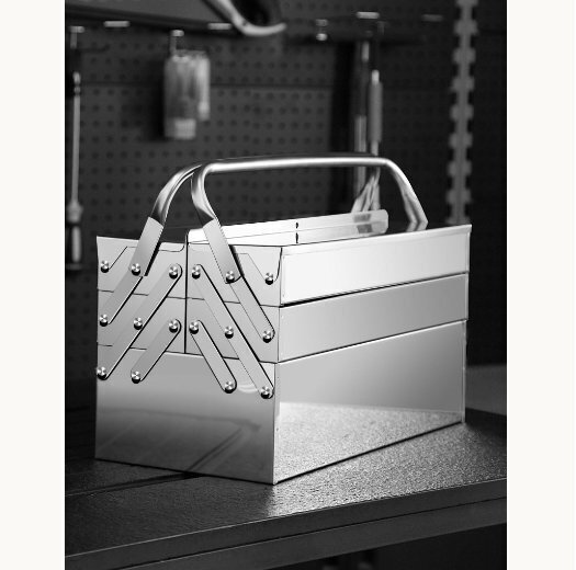 ※新品未使用寸法:幅465×奥行205×高さ225mm重量:約3.6kg重量: 3.6kg層数: 3層の折りたたみスペース高い耐久性をもつ、さびないステンレス工具箱です。大切な工具や道具、電動器具を安心して保管できます。持ち運びに便利な取っ手が両側に付いています。自動車鈑金等の金属