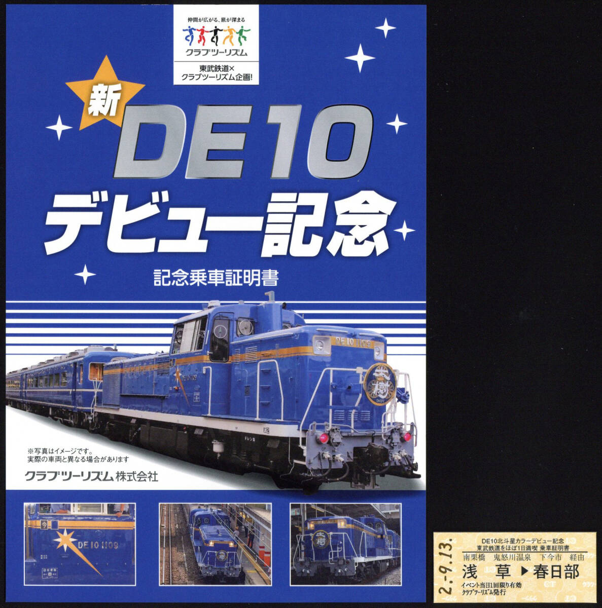 R2 東武鉄道×クラブツーリズム DE10デビュー 記念乗車証明書