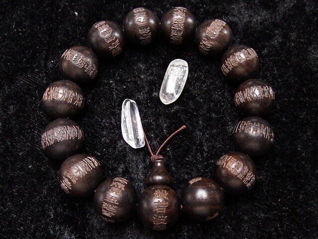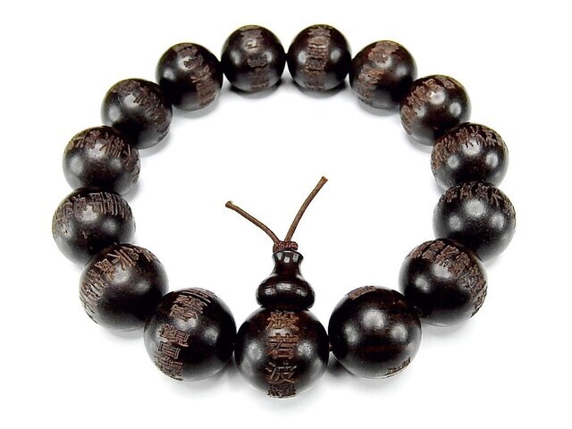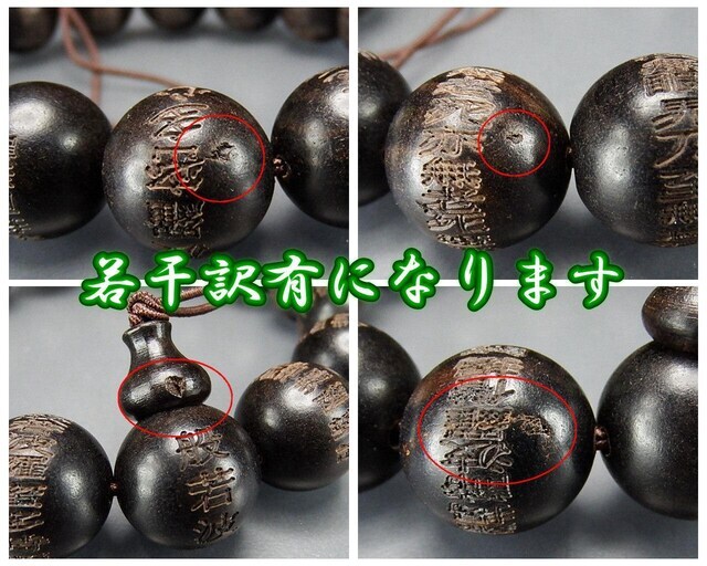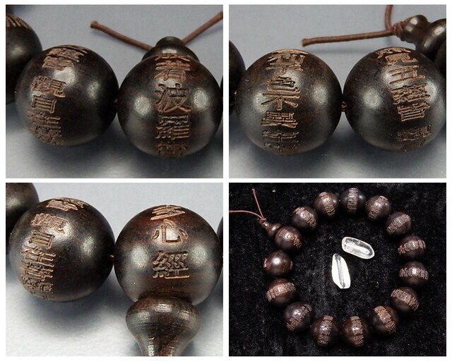 訳有格安般若心経中文漢字素彫り良質黒檀木15mm数珠念珠ブレスレットK1-9-105プライム