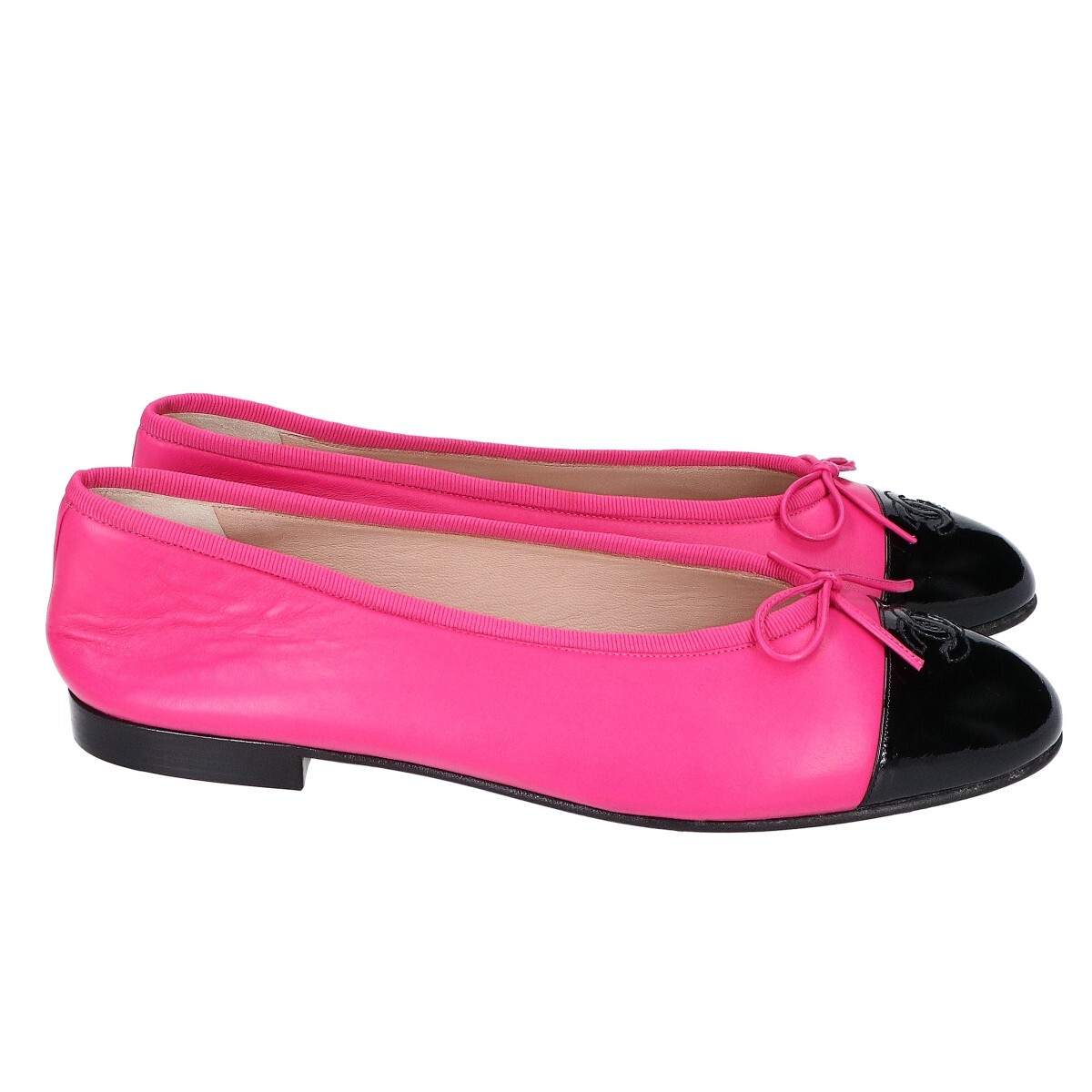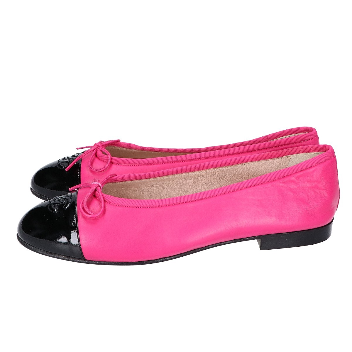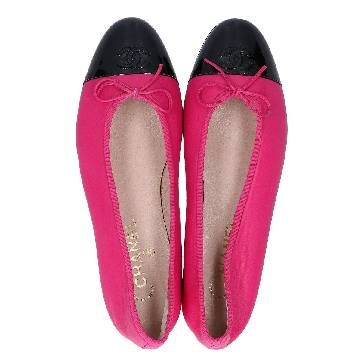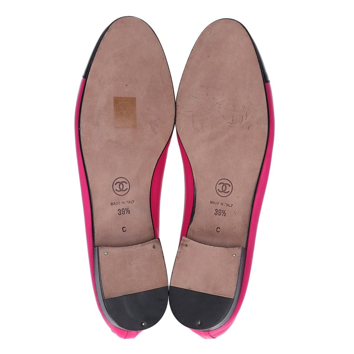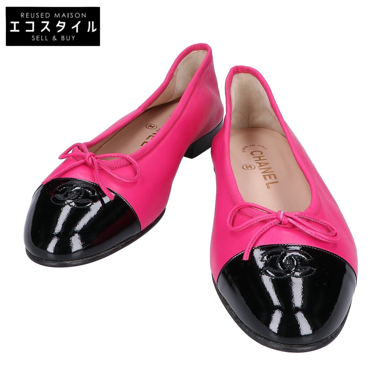 美品 CHANEL シャネル ココマーク バレリーナ レザー/パテント フラット シューズ 39 1/2C ピンク/ブラック レディース