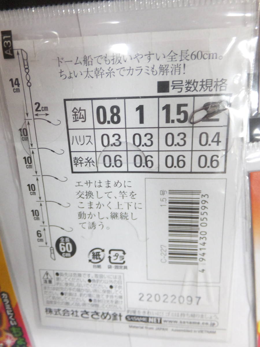 ドームで扱いやすい全長60cmの5本鈎。仕掛絡みが少ない、ちょい太幹糸仕様。