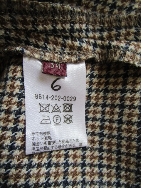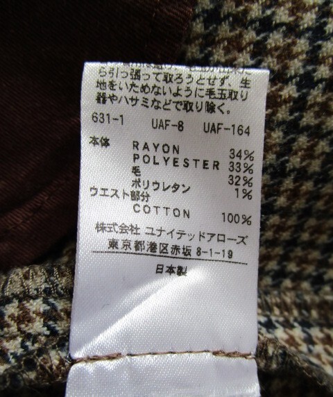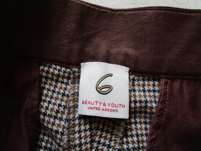 ロク ユナイテッROKU 6 ドアローズ BEAUTY&YOUTH ハウンドトゥーススリムパンツ トレンカ型 チェック柄 千鳥格子 34 パンツ 茶系