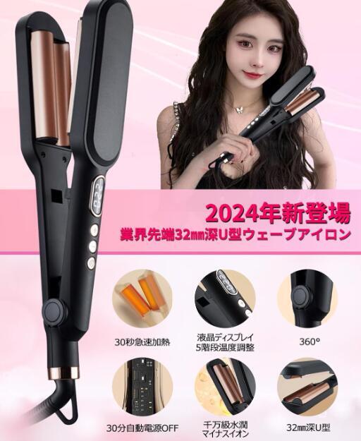ヘアアイロン カール ウェーブアイロン 32㎜【美容師お勧め!】 カールアイロン 140℃~220℃ 5階段温度調節