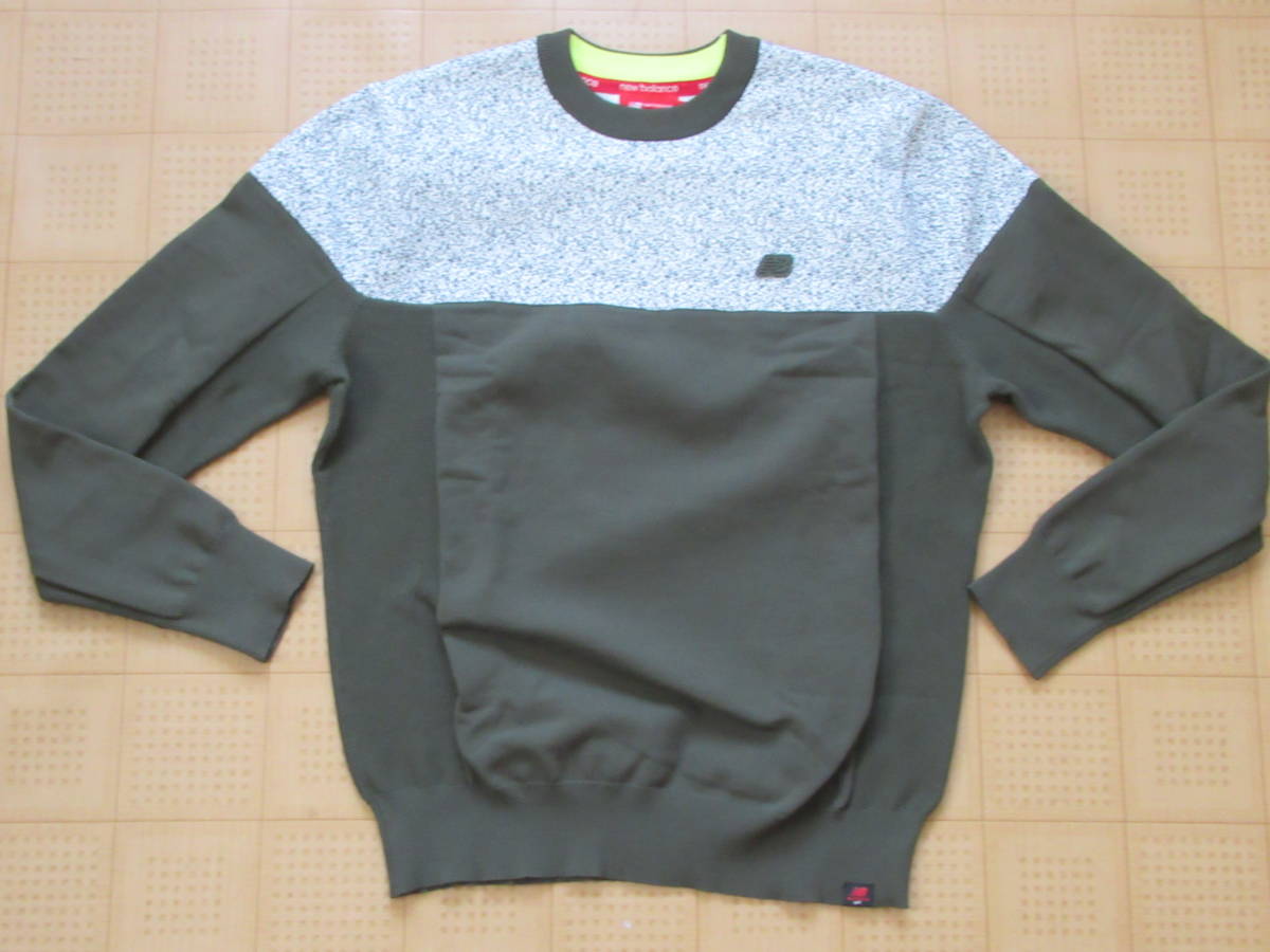 即決 New Balance GOLF クルーネックニット グレー/カーキ 4サイズ Mサイズ相当 ニューバランス ゴルフ