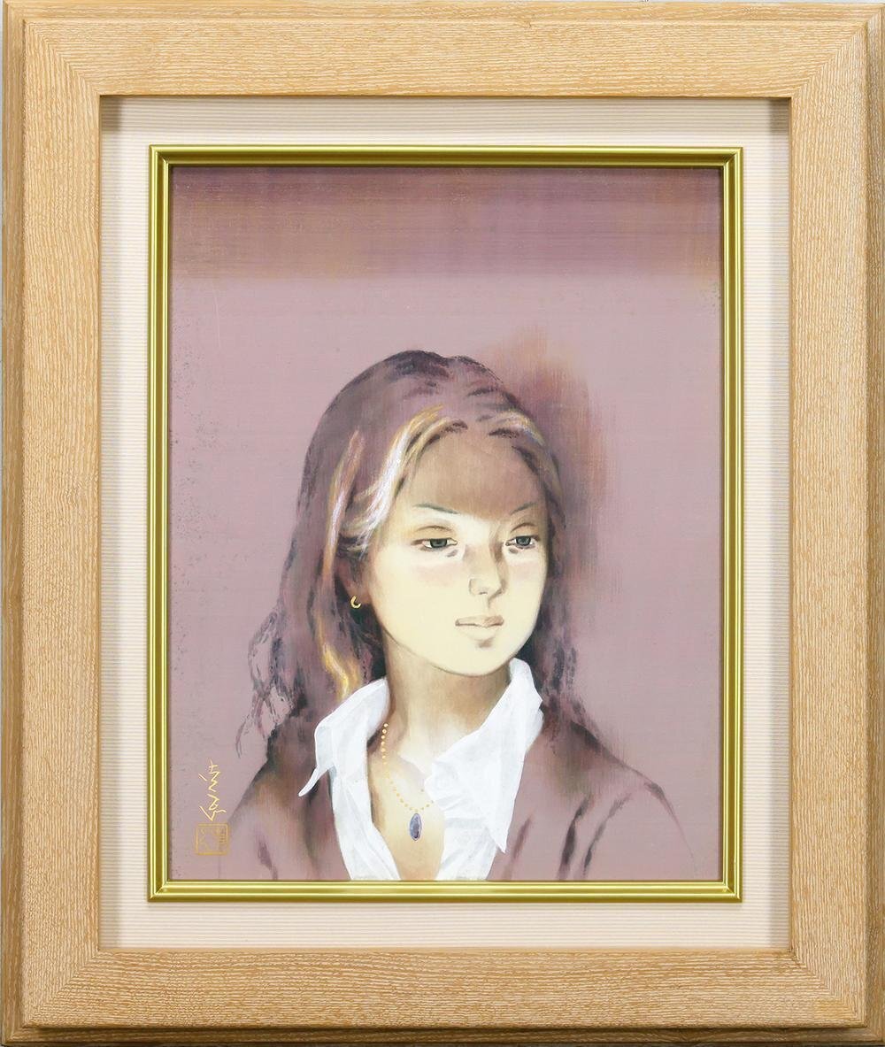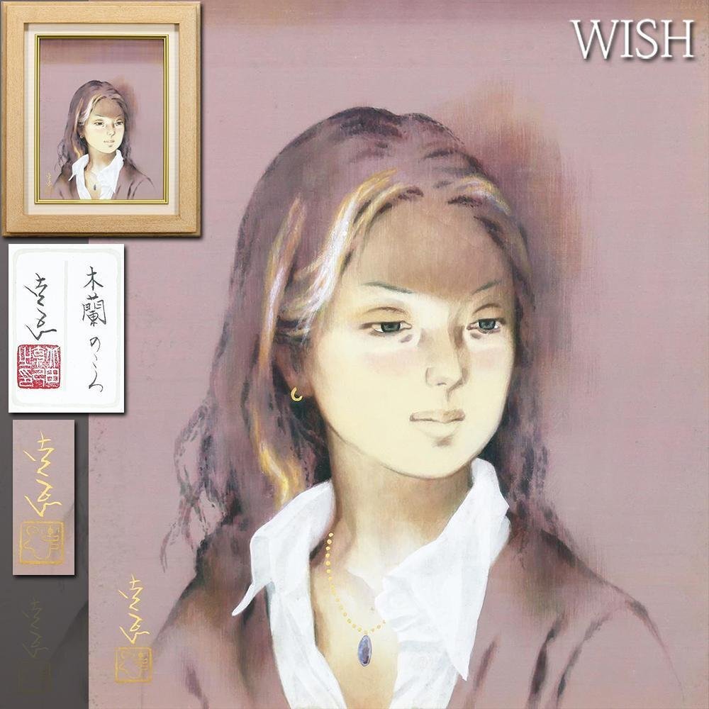 【真作】【WISH】北田克己「木蘭のころ」日本画 6号 金落款 金泥仕様 共シール ◆凛とした美しさの少女名画   〇現代巨匠 #25103722