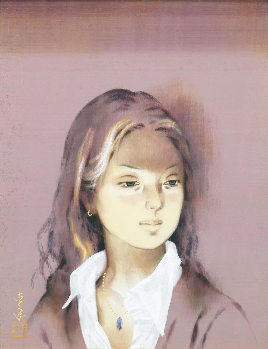 1955年東京都生まれ、芸大大学院修、日本美術院同人、院賞大観賞、院展奨励賞3、春の院展春季展賞、奨励賞3、山種美術館賞展大賞、淡い色使いと繊細な筆致による幻想的な作風が特徴であり、主に若いアジア人女性をモチーフとした抽象画を多く描いているが、花や風景をモチーフとした作品においても確かなデッサン力を活かしつつもエキゾチックで幽玄な美しさを感じさせる、愛知県立芸術大学教授/広島市立大学名誉教授