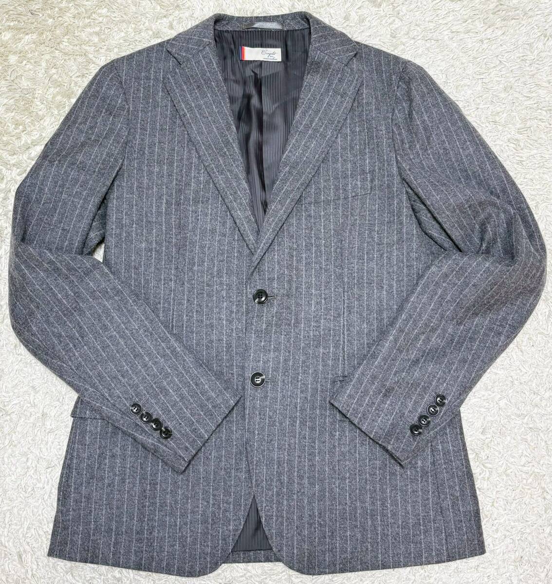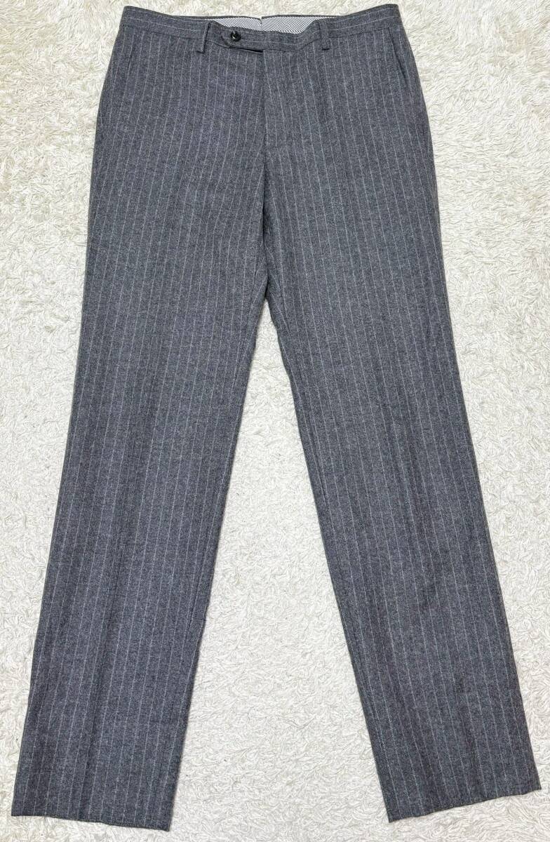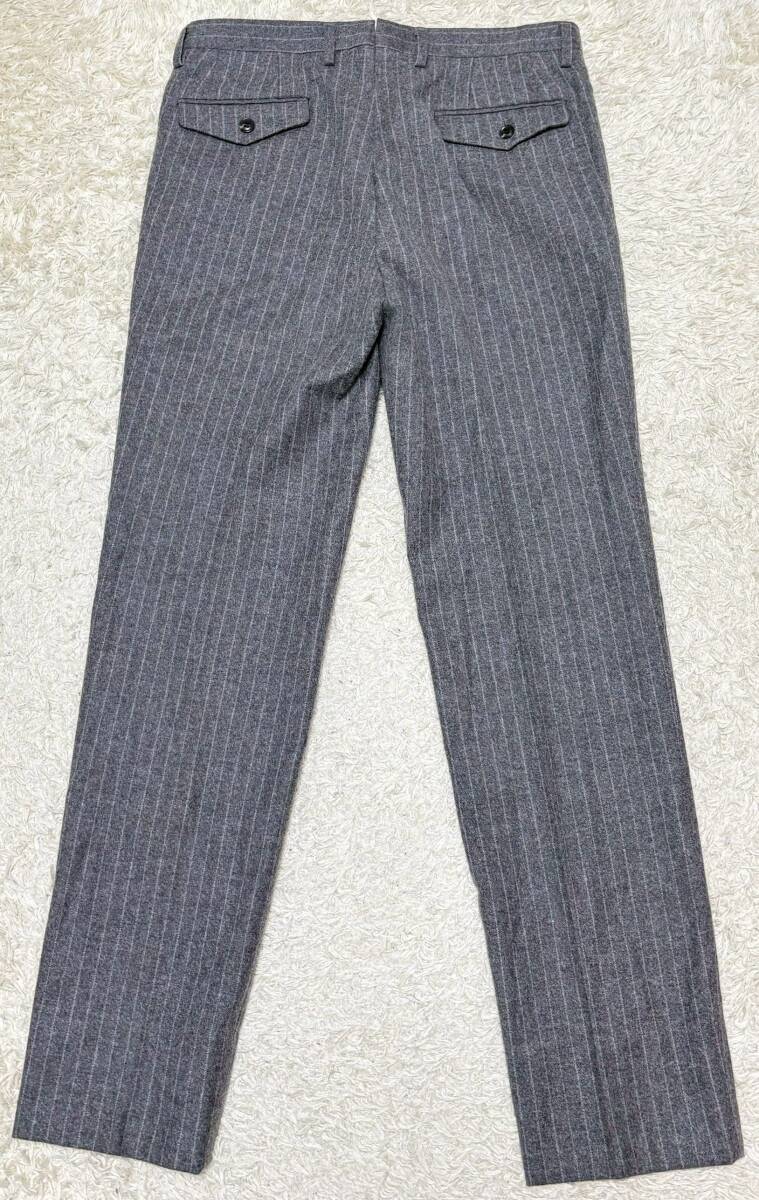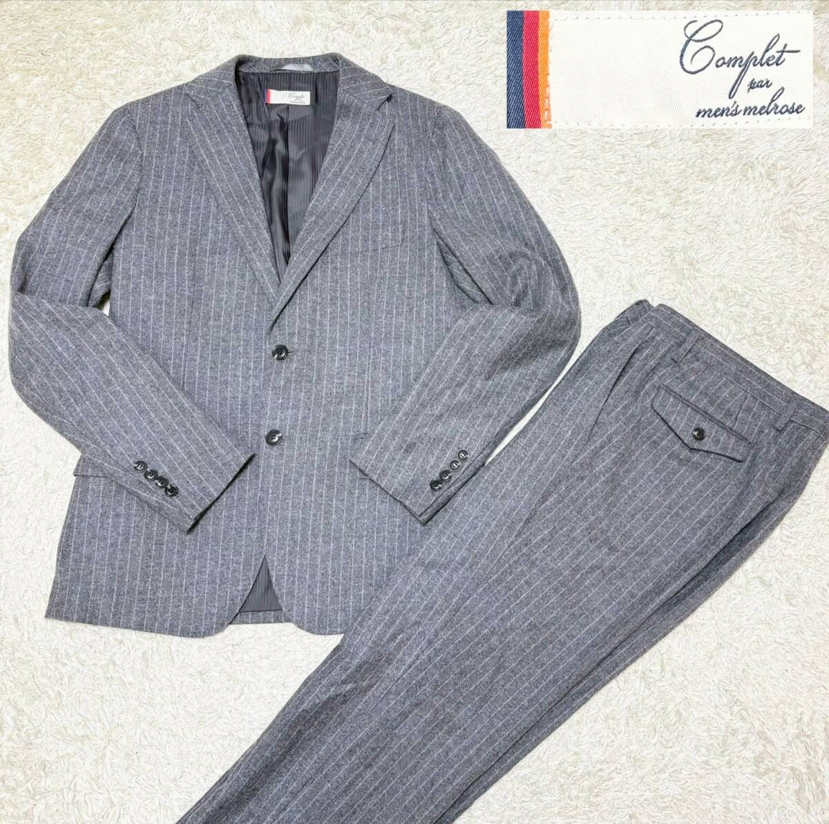 【カシミヤ混★】サイズ4(L程度) 美品 MEN'S MELROSE セットアップスーツ 上下セット●グレーストライプ☆メンズメルローズ (10)