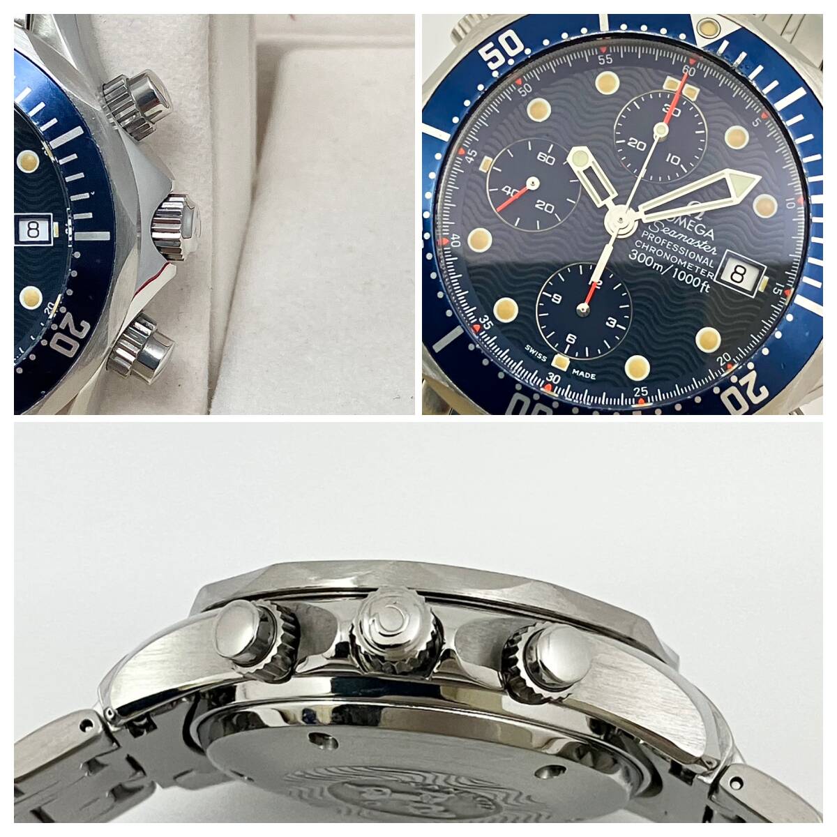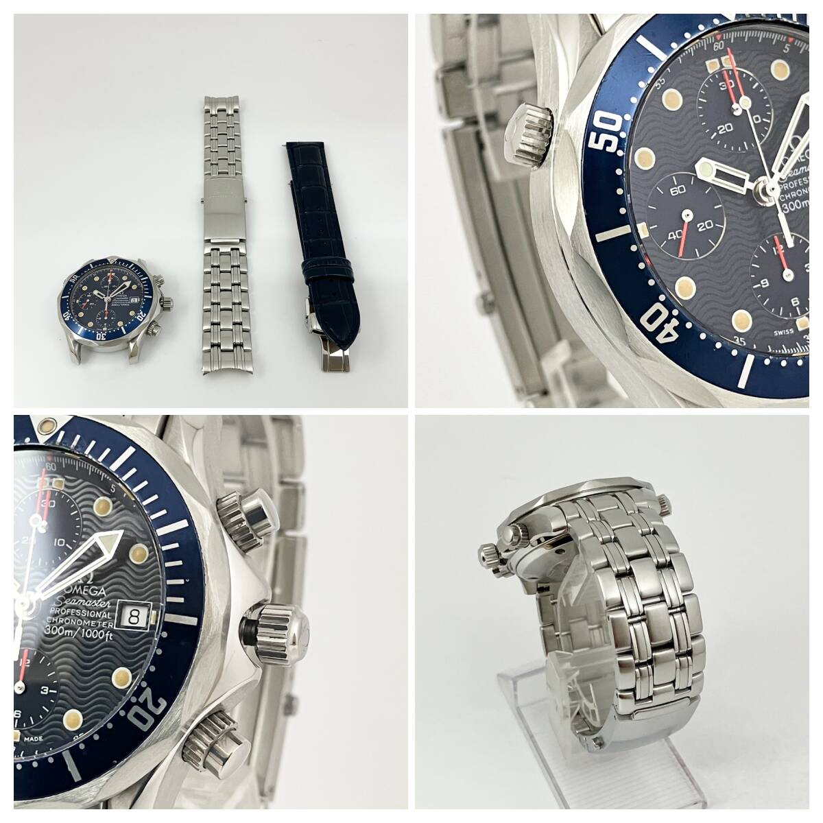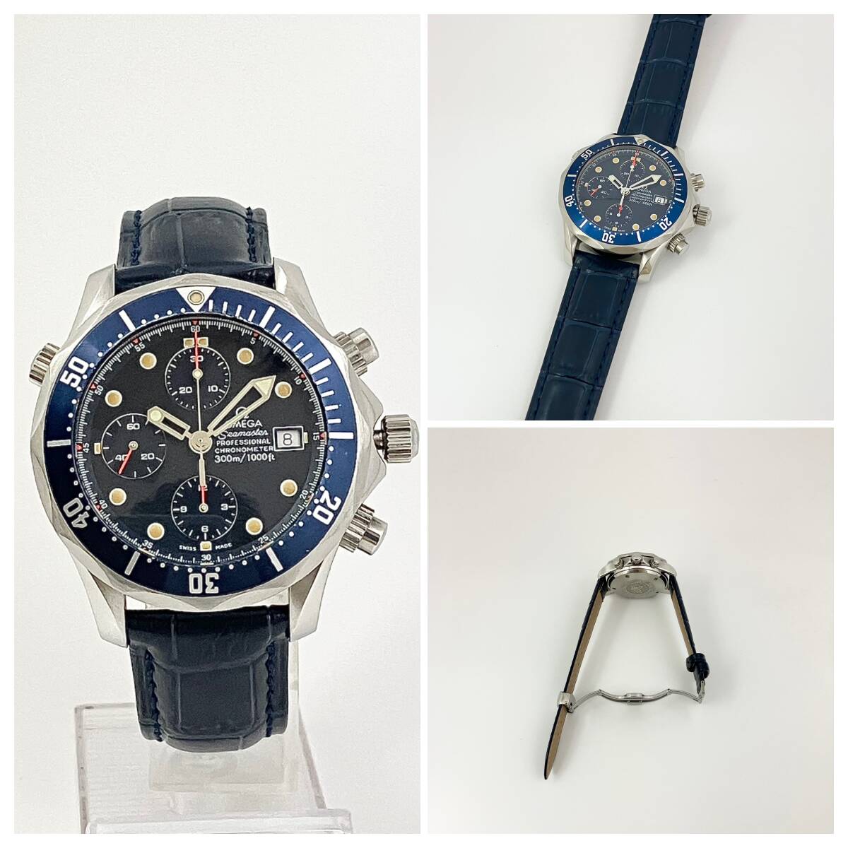 付属品、ベルト2種付き☆OH済み極美品のオメガシーマスター時計・300m・自動巻きクロノグラフ・ネイビー盤☆2599-80☆
