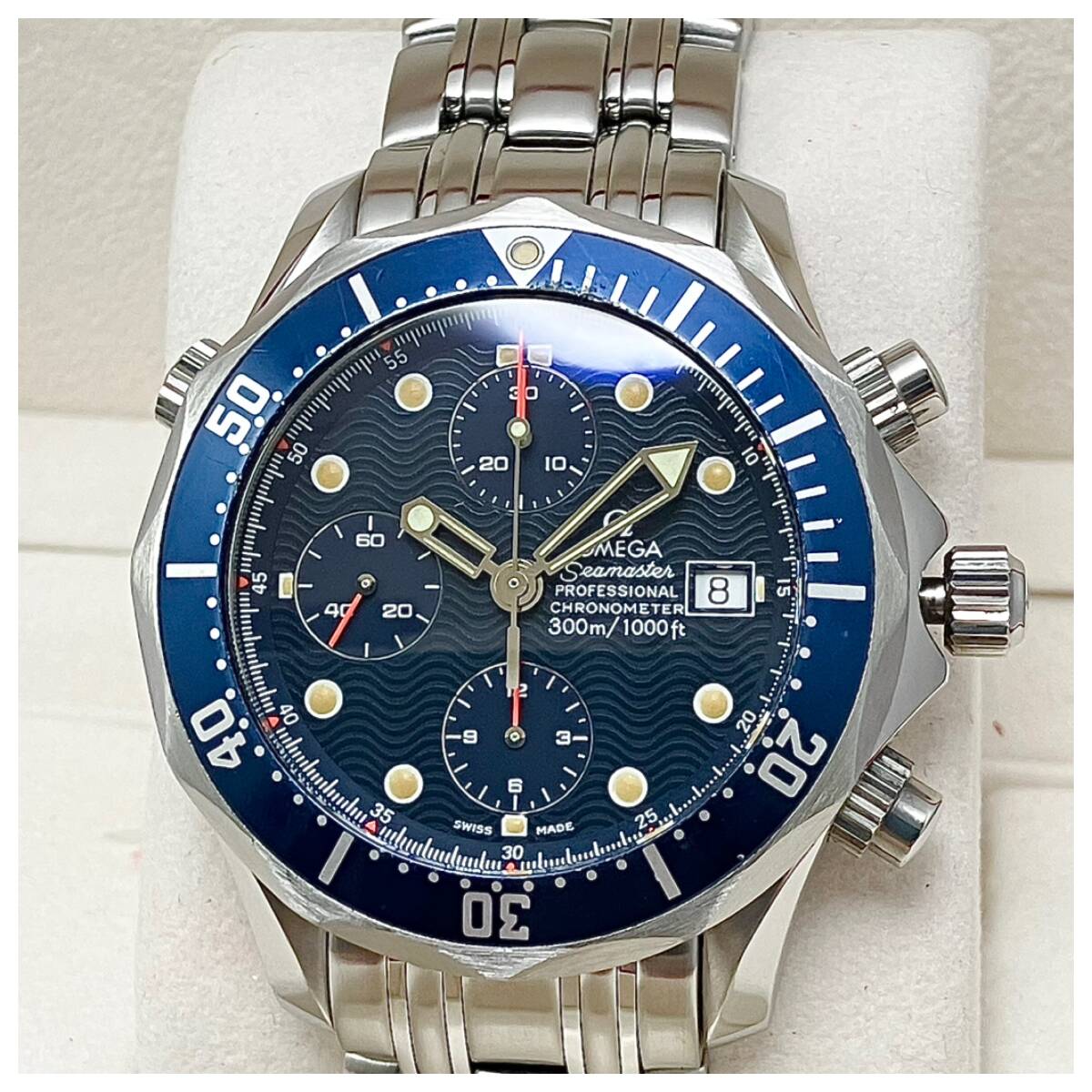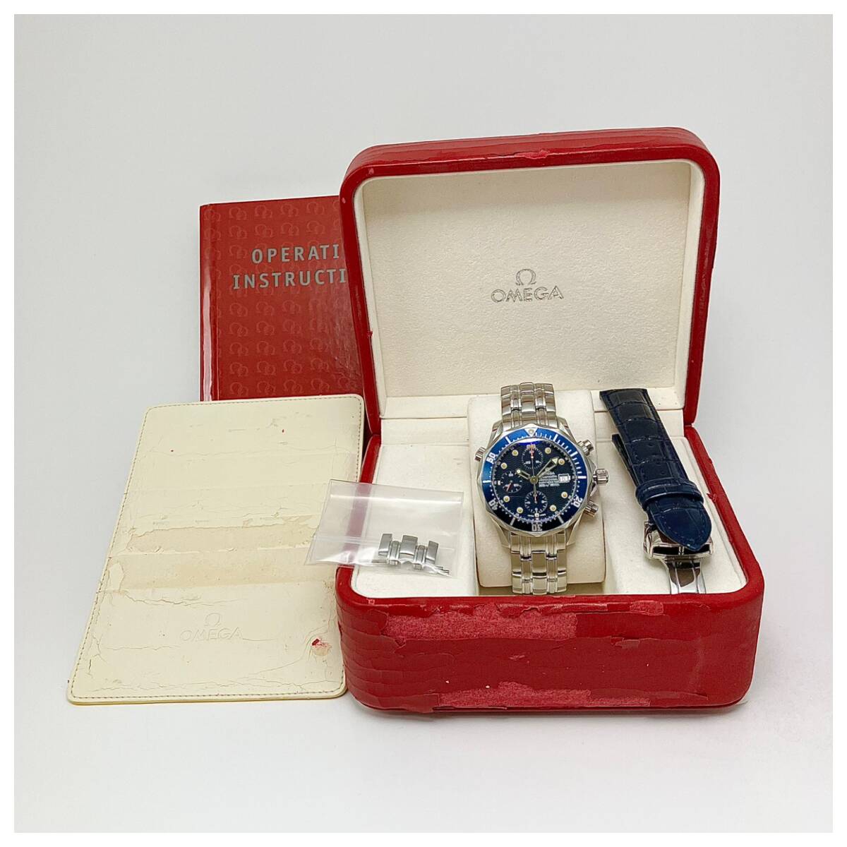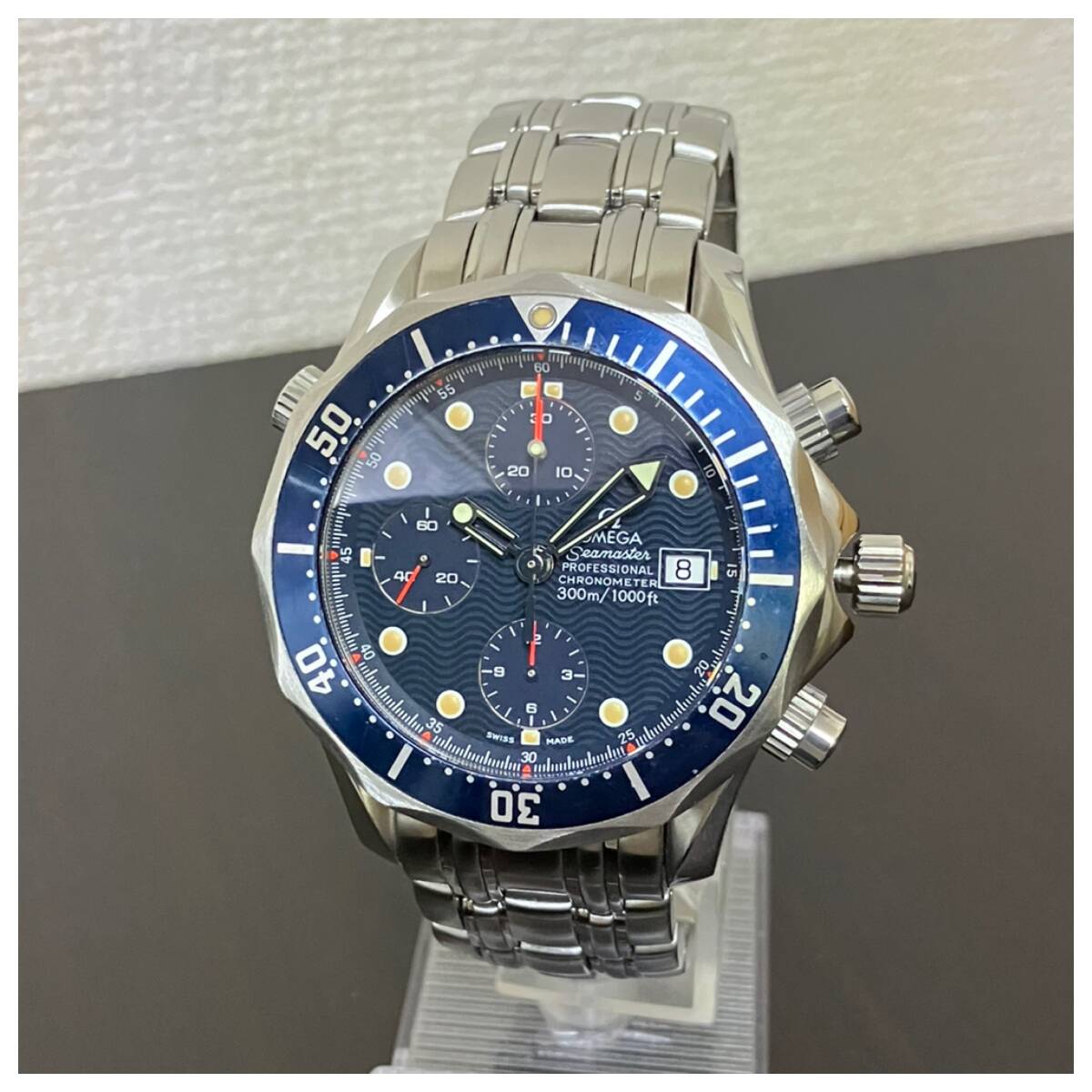 付属品、ベルト2種付き☆OH済み極美品のオメガシーマスター時計・300m・自動巻きクロノグラフ・ネイビー盤☆2599-80☆
