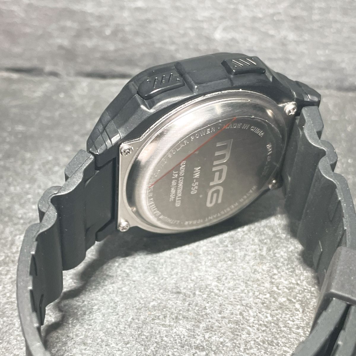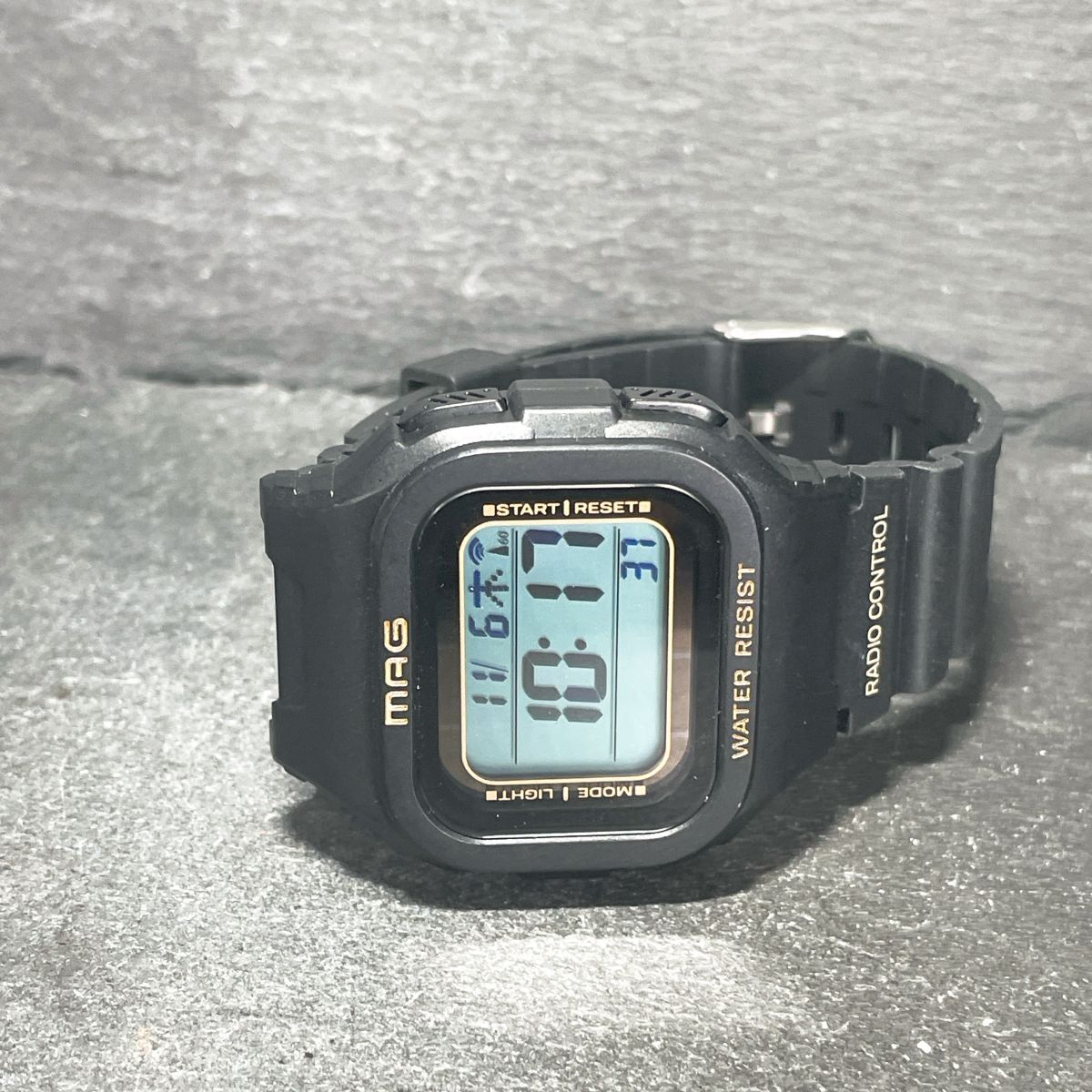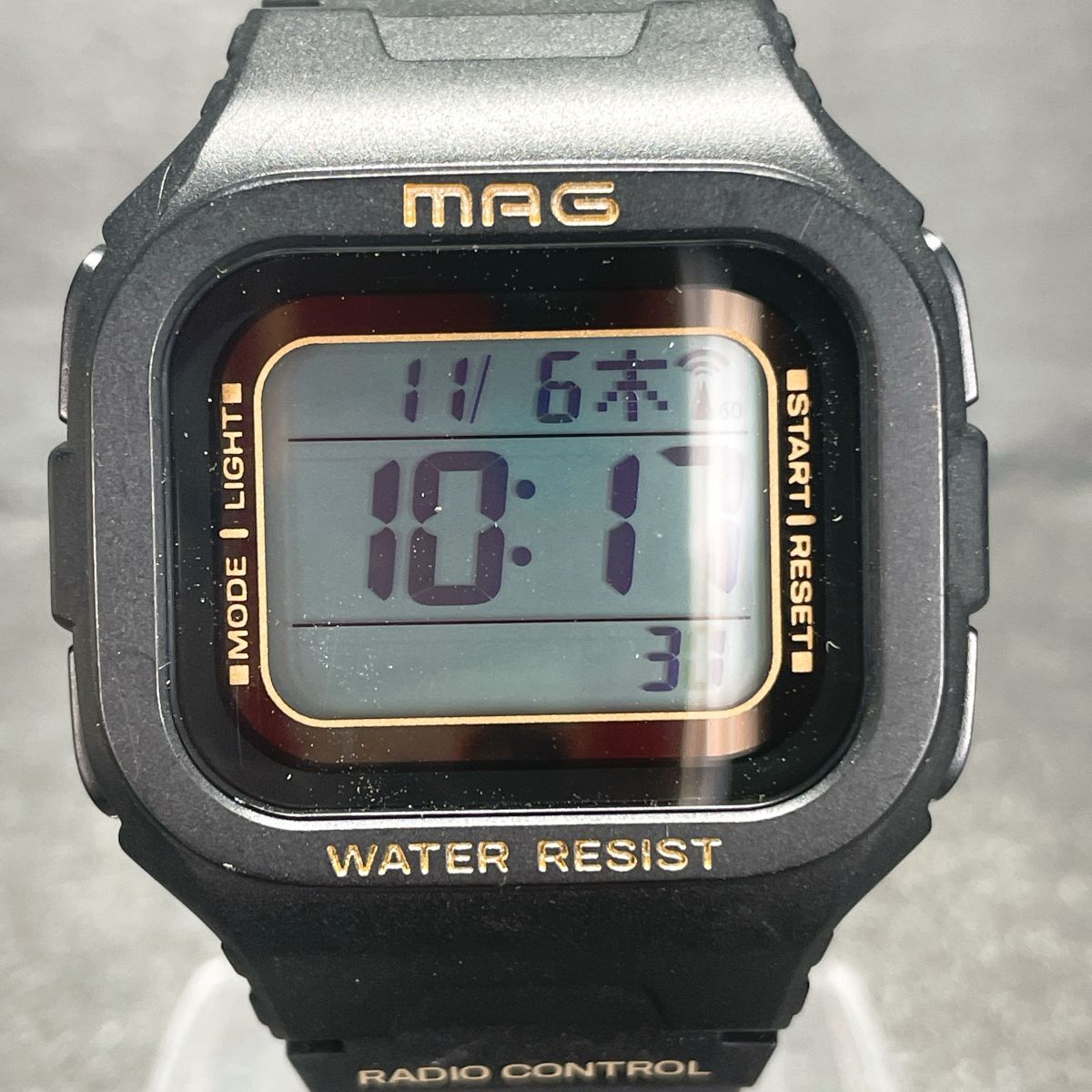 超美品 MAG マグ MW-550 BK2 腕時計 デジタル 電波ソーラー 多機能 カレンダー ラバーバンド スクエア ステンレス スチール 動作確認済み