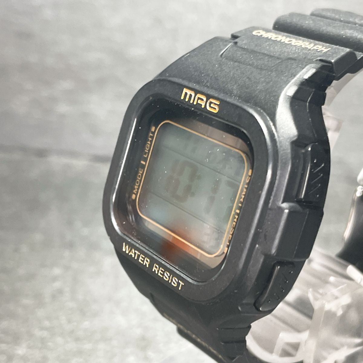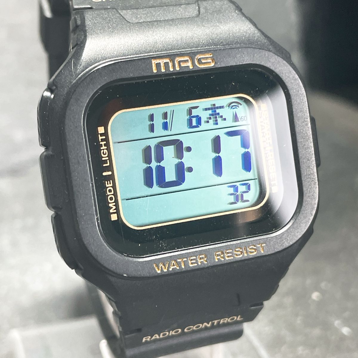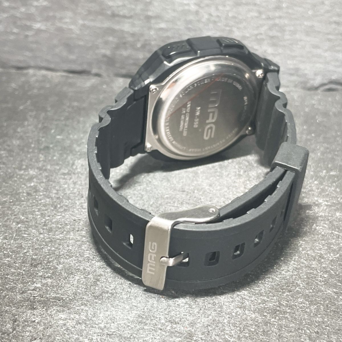 超美品 MAG マグ MW-550 BK2 腕時計 デジタル 電波ソーラー 多機能 カレンダー ラバーバンド スクエア ステンレス スチール 動作確認済み