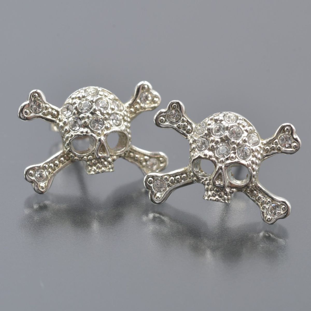 美品 Vivienne Westwood ピアス スカル シルバー ラインストーン ドクロ 両耳 ヴィヴィアンウエストウッド アクセサリー #N※1030-19/TLk.e