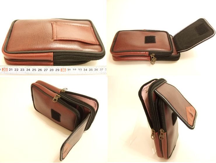 合皮ですが見た目まるで本革に見え、高級感有る落ち着いた風合いです! 二つのチャック付き収納でスマホ、財布、たばこ等を入れるのに大変便利です。 本体まち2cmとマジックテープカバー付きポケット マチ1.5cmの二層収納、ベルト通し約 7センチです。 お送りする商品は撮影の照明等のため、商品画像と合皮の色が異って見える場合がございます。 ※超美しい外観ですが、内側のカバーの縫製が雑な作りで格安値引き商品に成ります。 |