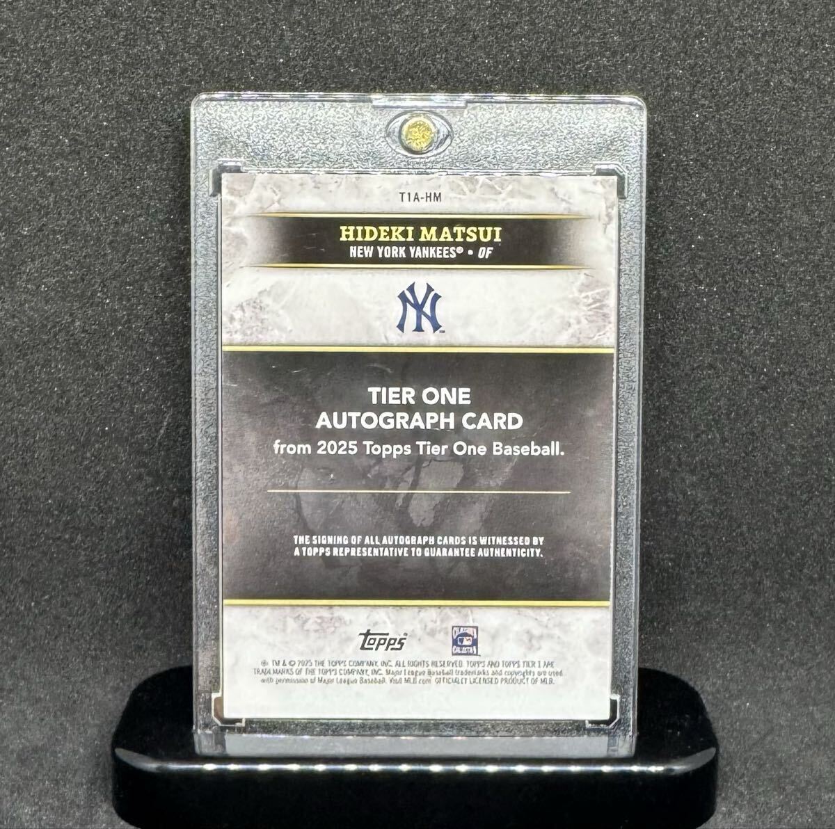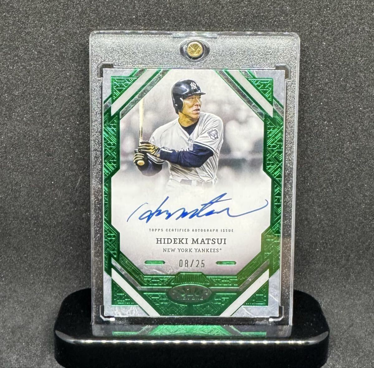 こちらは、日米で活躍したスーパースター 松井秀喜選手の2025年 Topps Tier One に収録された 直筆サインカード(Auto Refractor /25) です。