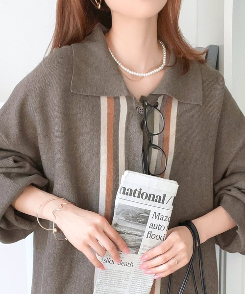 キーワード:カーディガン レディース ストライプ 長袖 秋 冬