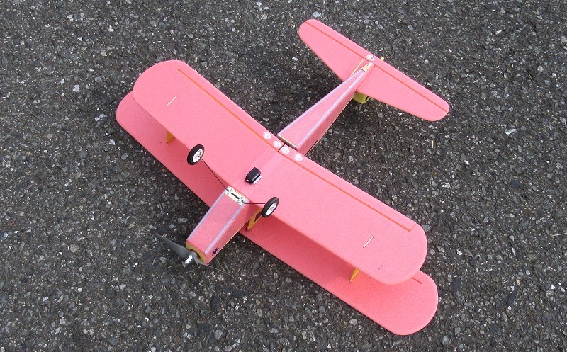 ダイソーで販売しているスチレンボード(カラーボード : 450x840x厚さ5mm)で作る超小型複葉機です。