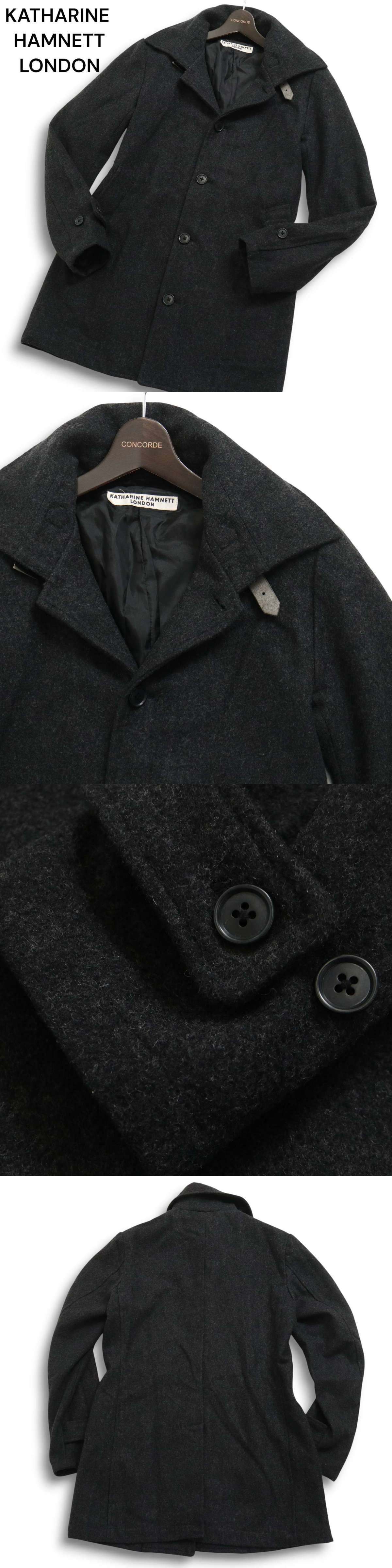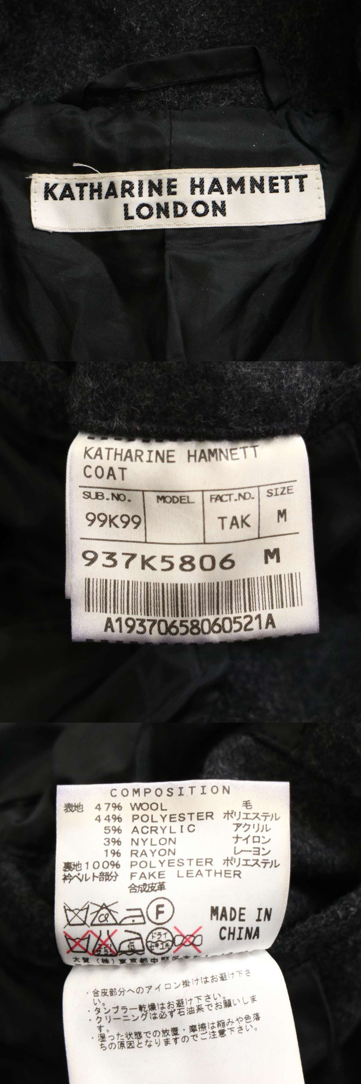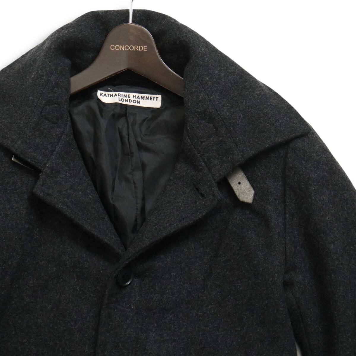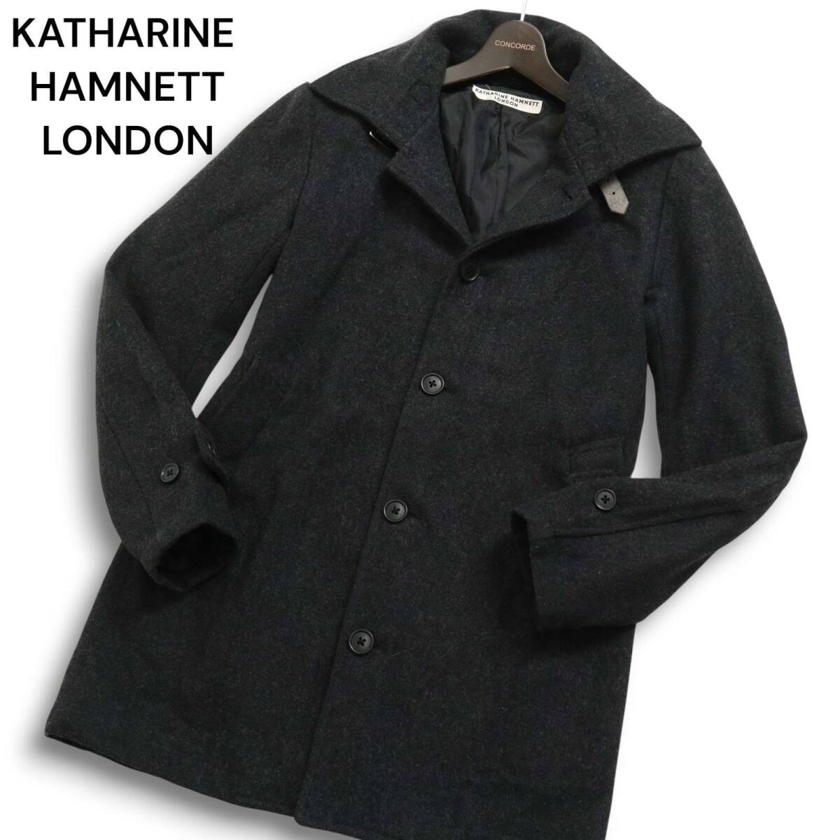 KATHARINE HAMNETT LONDON キャサリン ハムネット 秋冬 ウール★ ステンカラー バルマカーン コート Sz.M メンズ 灰