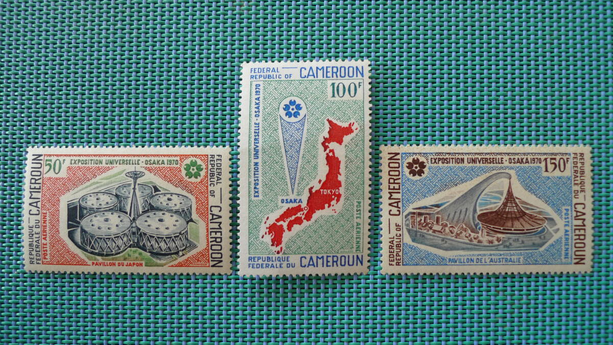 カメルーン 1947年 航空切手 OSAKA EXPO ’70 50フラン,100フラン、150フラン 3種 未使用 MNH