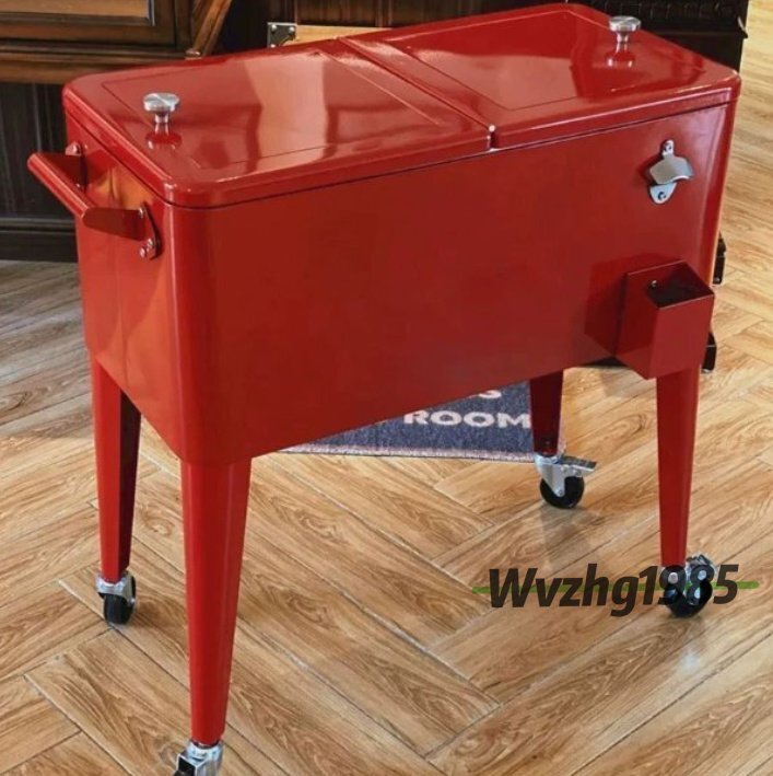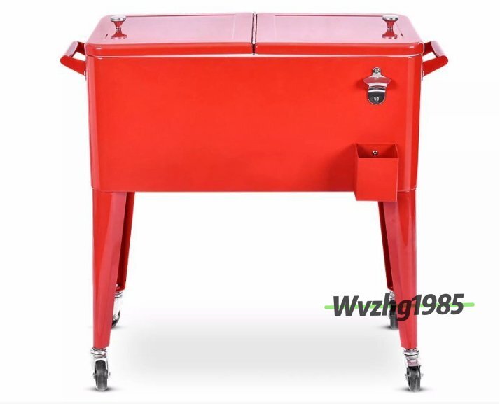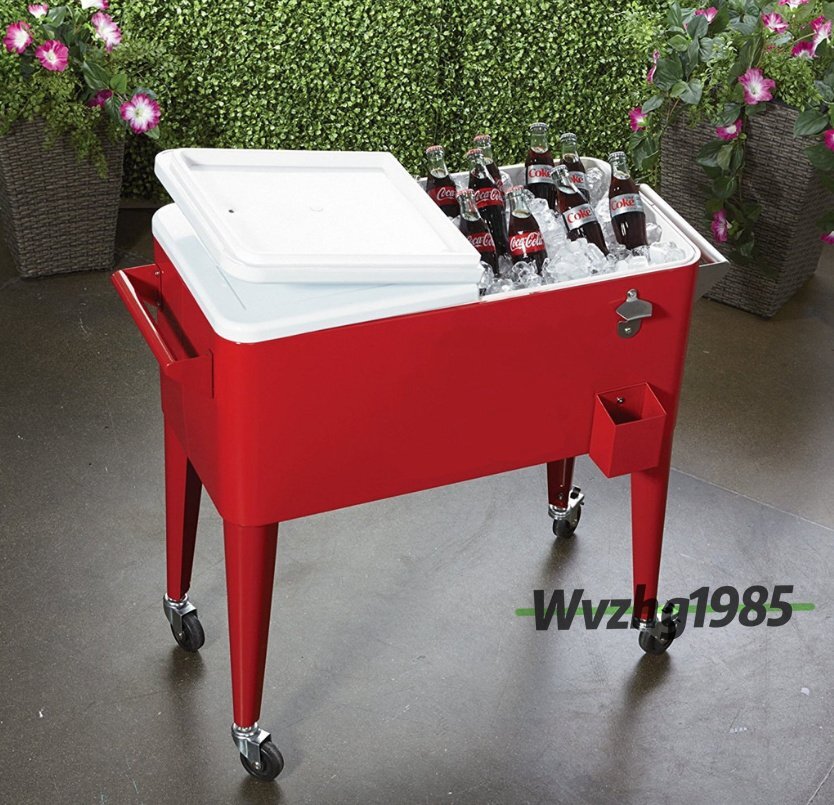 コーラレトロ アウトドア保温 ポータブル軽量 大容量80L クーラーボックス&アイスバケツ キャンプ・屋台用ワゴン