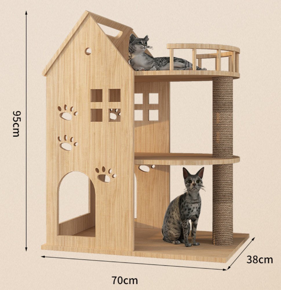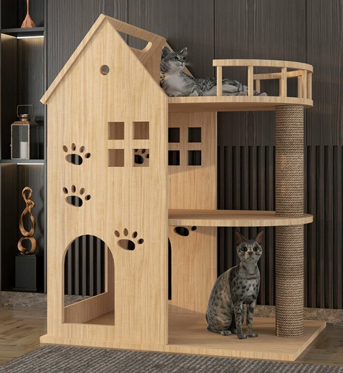 猫小屋猫別荘木一体猫の家柱猫城登り室内家庭用