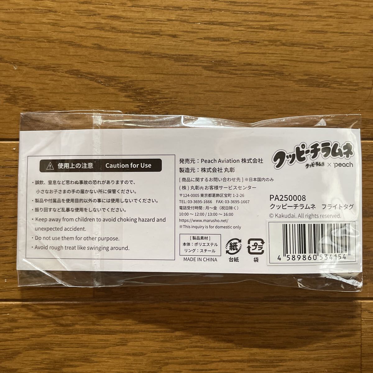 ピーチの機内販売で購入のクーピーラムネとコラボのクーピーチラムネフライトタグになります。