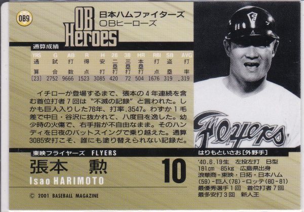 ●2001BBM/DH 【張本 勲】 OBヒーローズ No.OB9:日本ハム