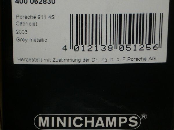1/43 Mini Champs Porsche 911 4S Cabriolet 2003 グレーです。箱が少し痛んでいますので、ご了承の上入札ください。商品の状況は写真でご判断の上、ノークレーム・ノーリターンでお願いします。保証はできませんが、定形外郵便での発送も可能です。