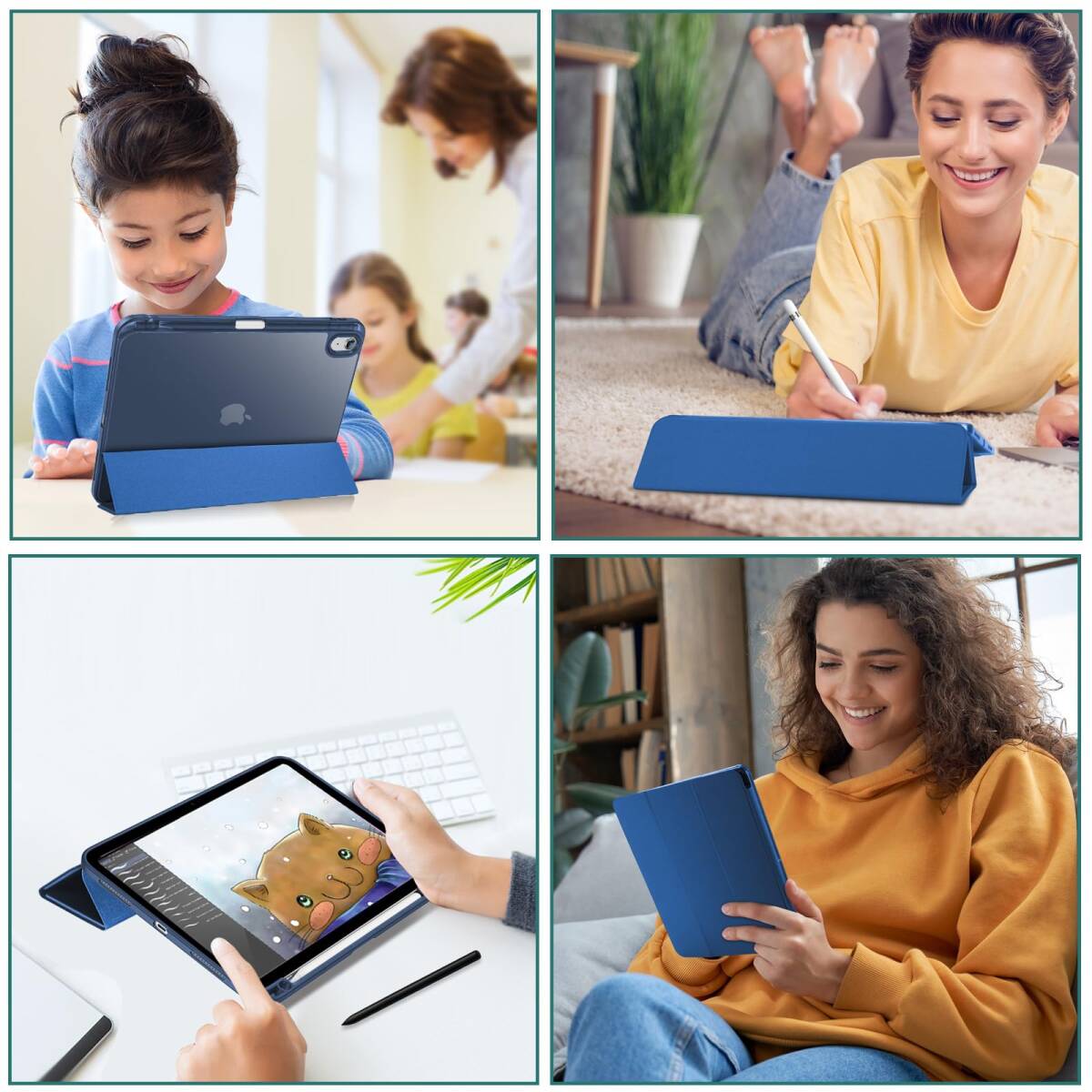 スマートカバー スタンド 三つ折り 耐衝撃 ペン収納 (ダークブルー) A2777 A2757 A2696 2022通用 2025